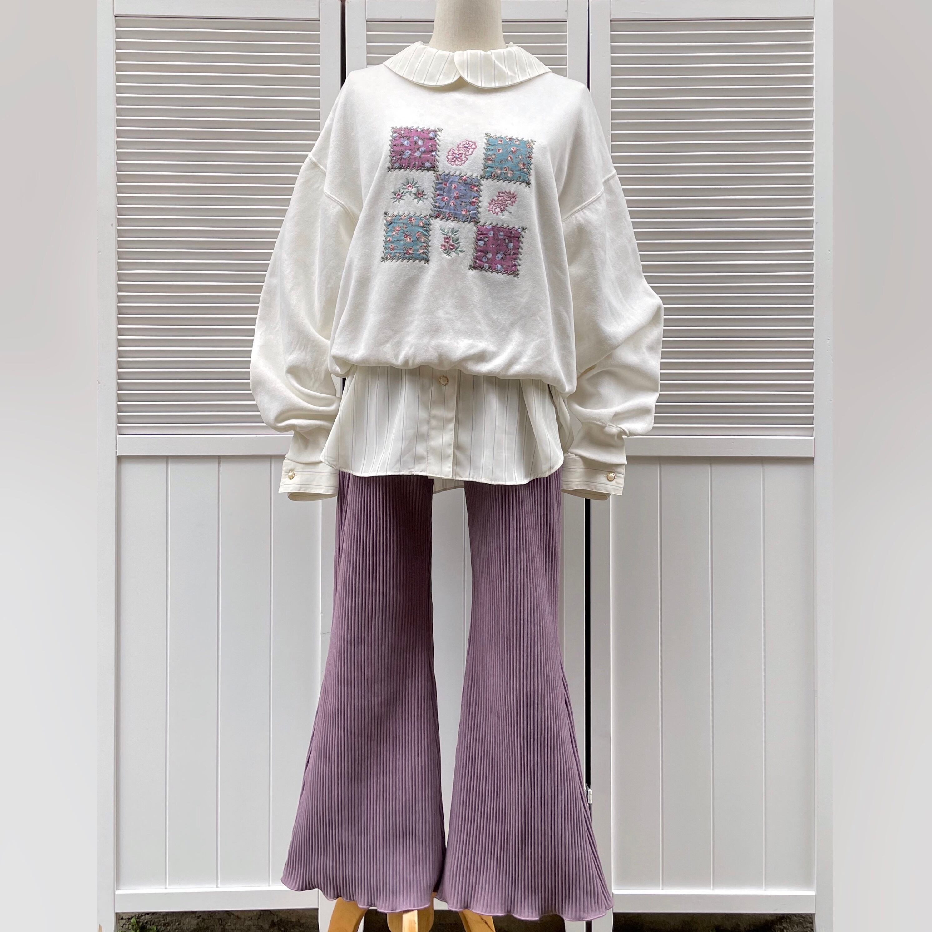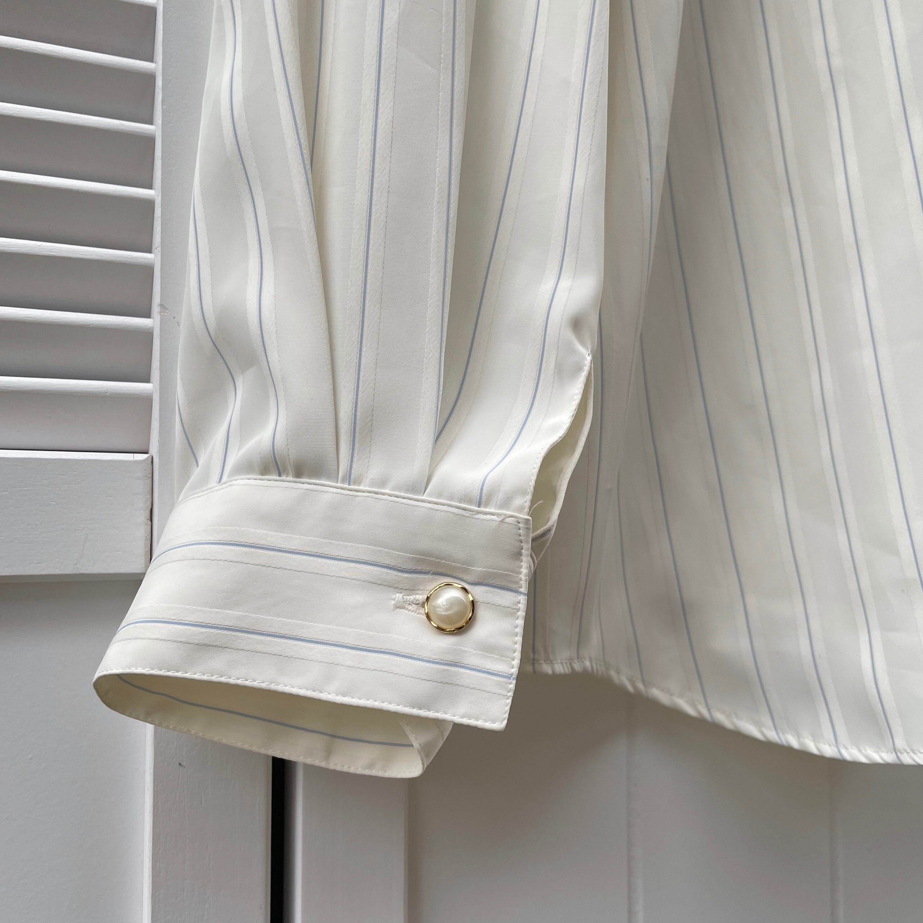 pinstripe round collar blouse〈レトロ古着 ピンストライプ 丸襟ブラウス 白 ホワイト 日本製〉