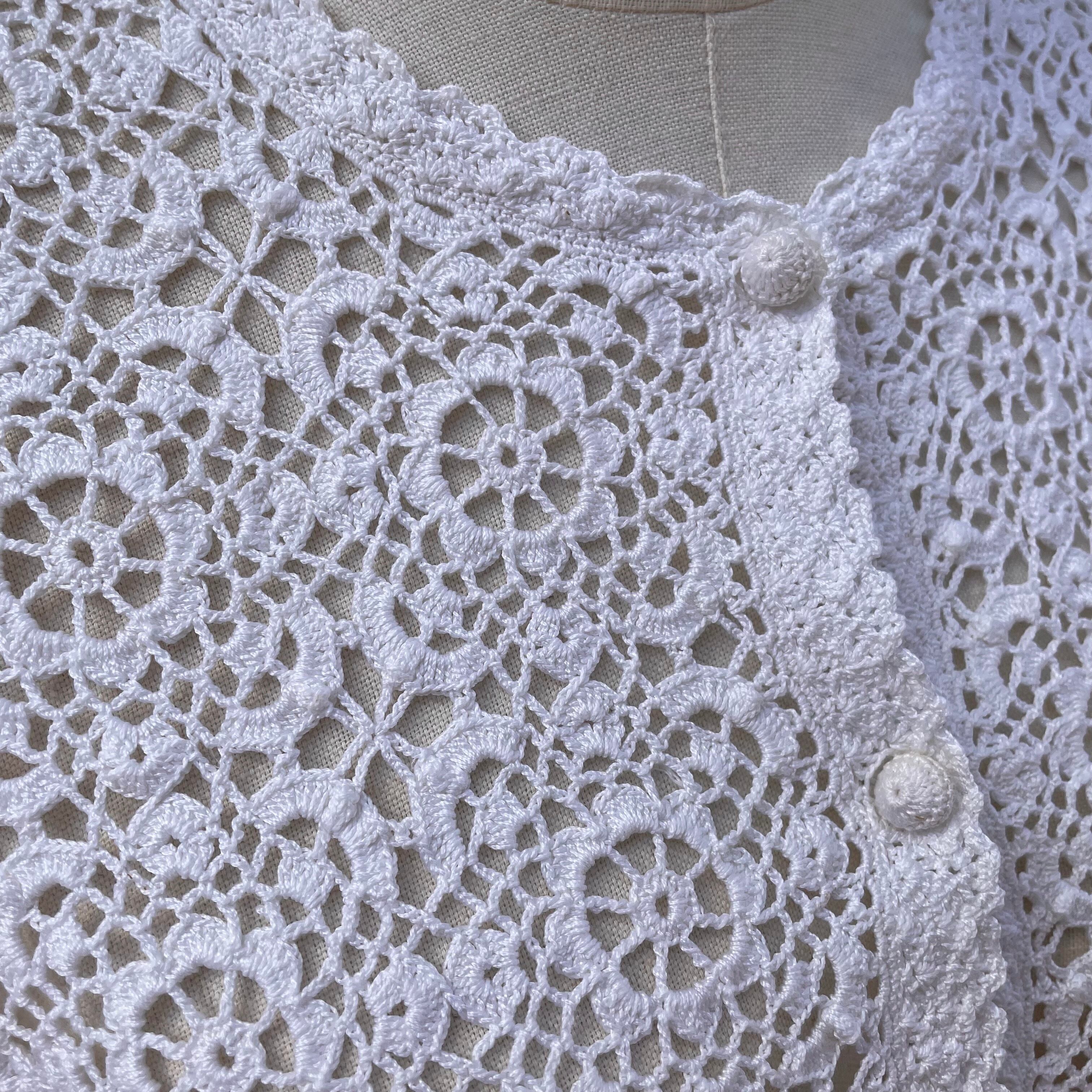 total lace crochet cardigan〈レトロ古着 総レース クロシェ カーディガン かぎ針編み ホワイト 白〉