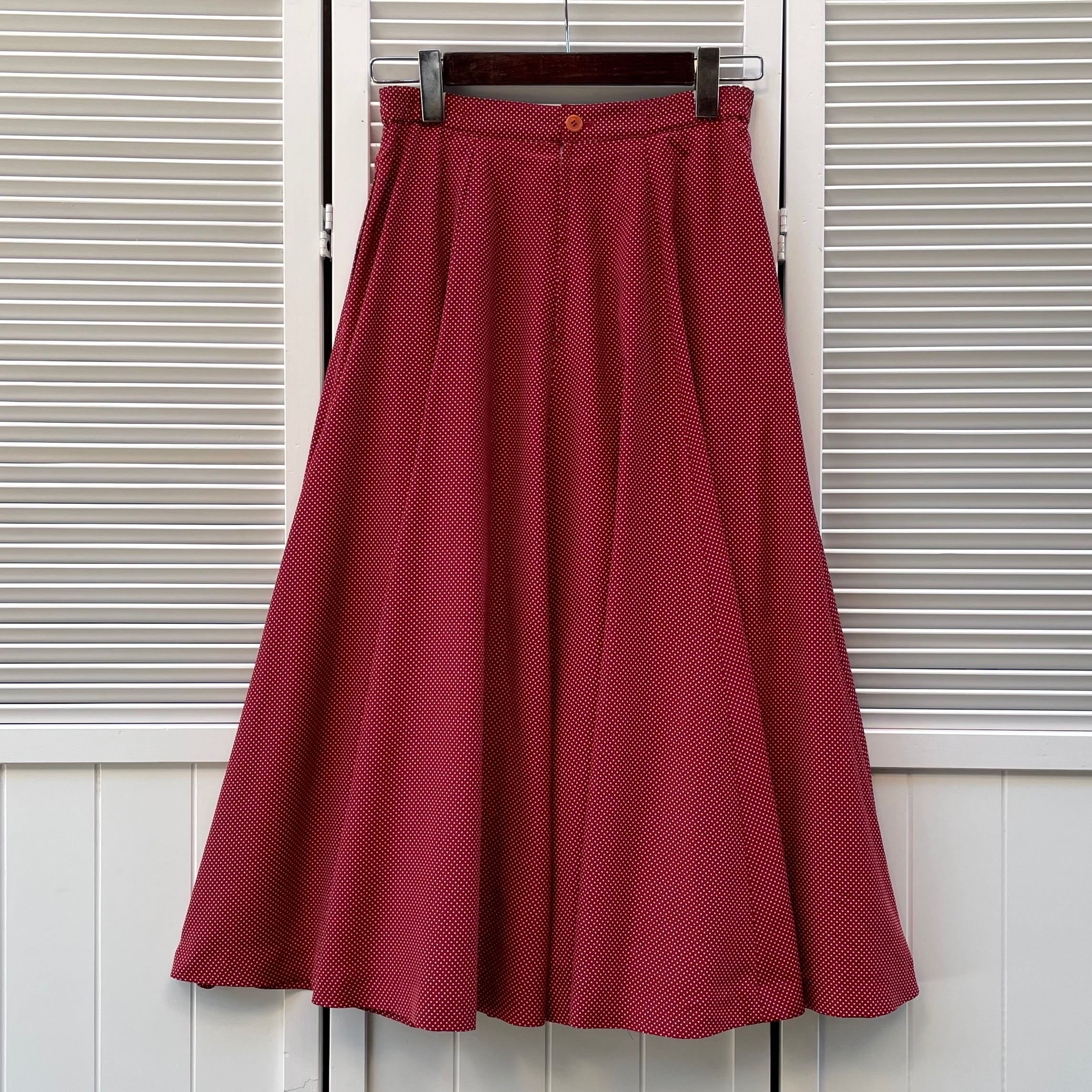 red pindot flared skirt〈レトロ古着 ピンドット柄スカート 赤 レッド 水玉 日本製〉