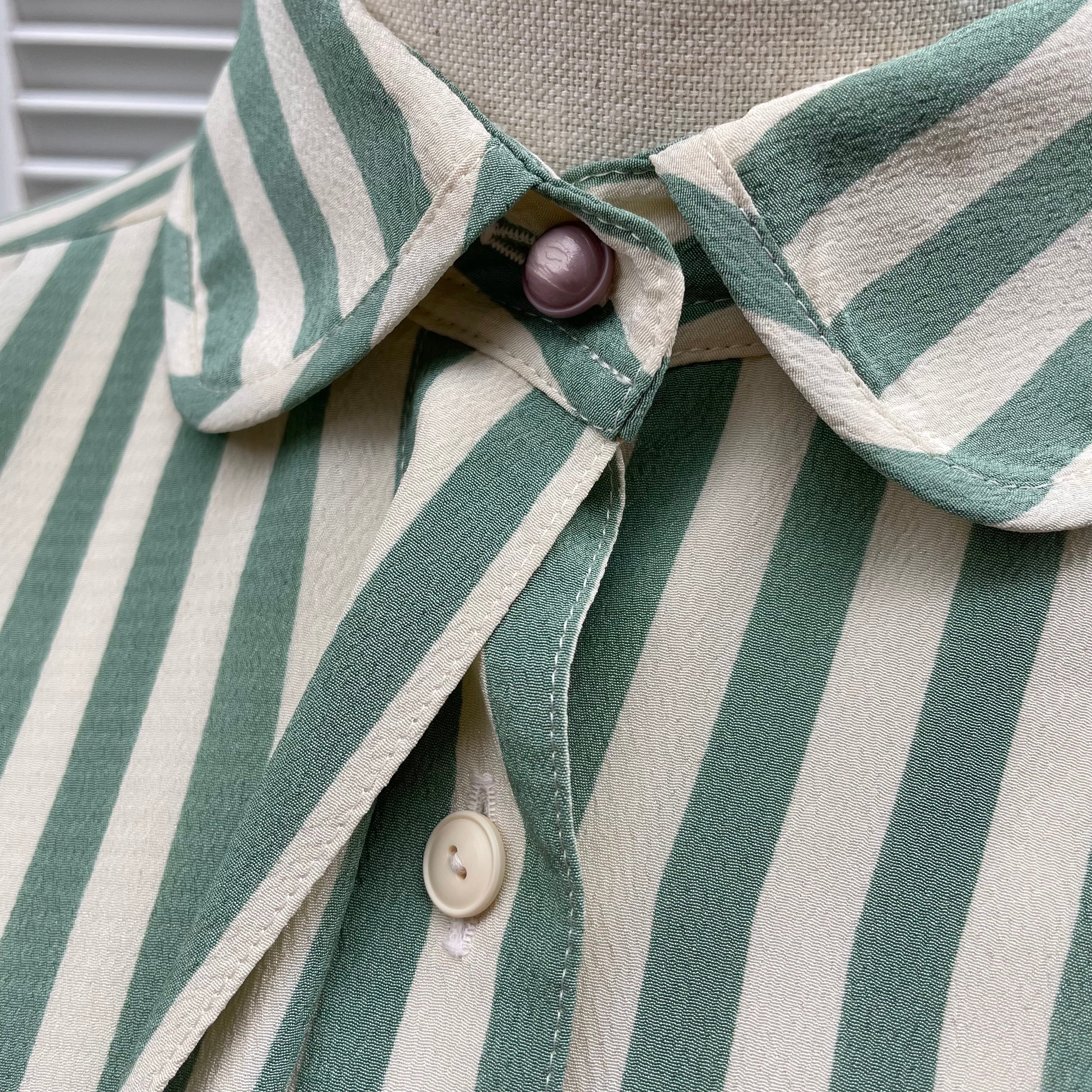 purple button striped blouse〈レトロ古着 パープルボタン ストライプ柄ブラウス シャツ 緑〉