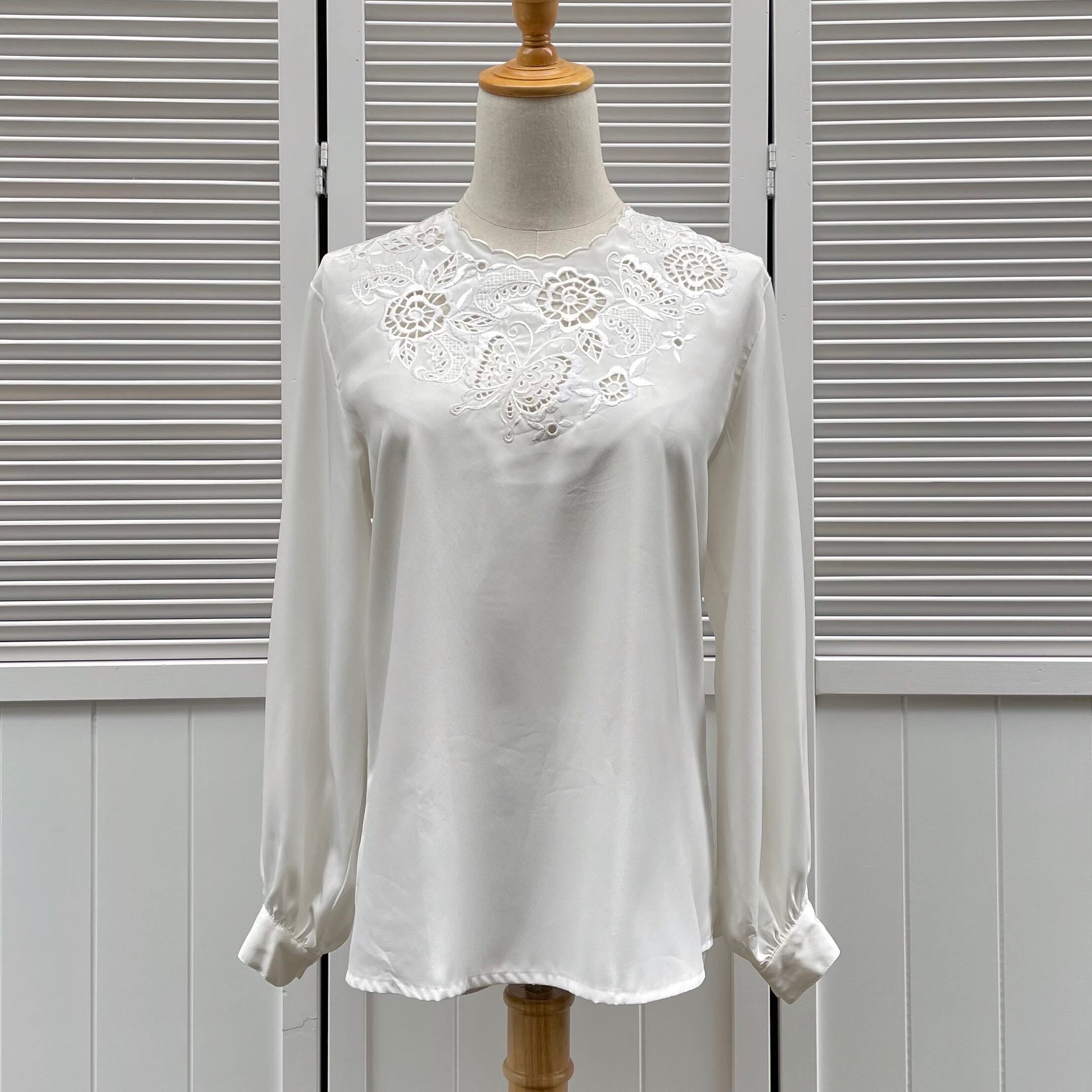 butterfly cutwork embroidery blouse〈レトロ古着 バタフライ カットワーク刺繍ブラウス 蝶々 白 ホワイト日本製〉