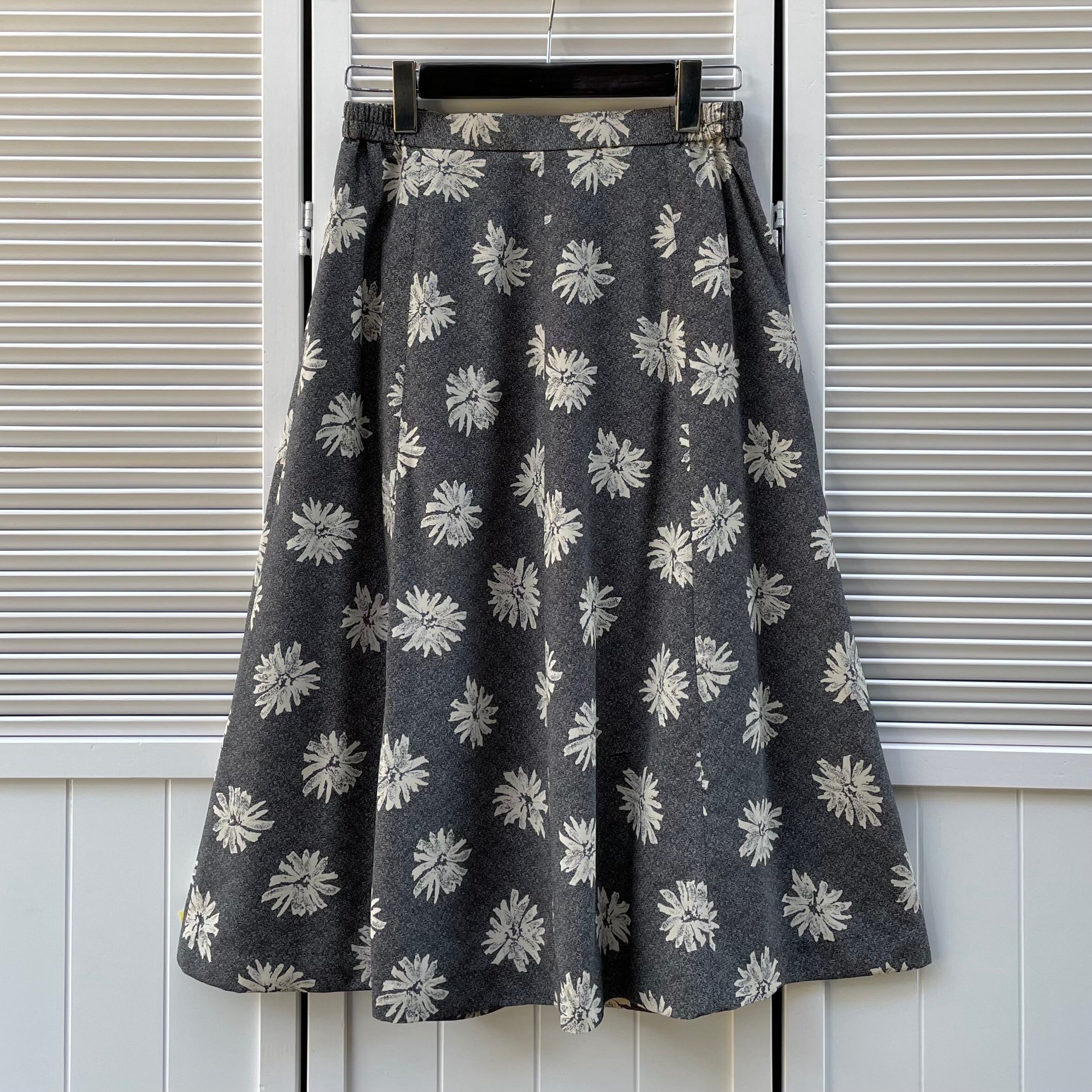 monotone floral flared skirt 〈レトロ古着 モノトーン 花柄 フレアスカート〉