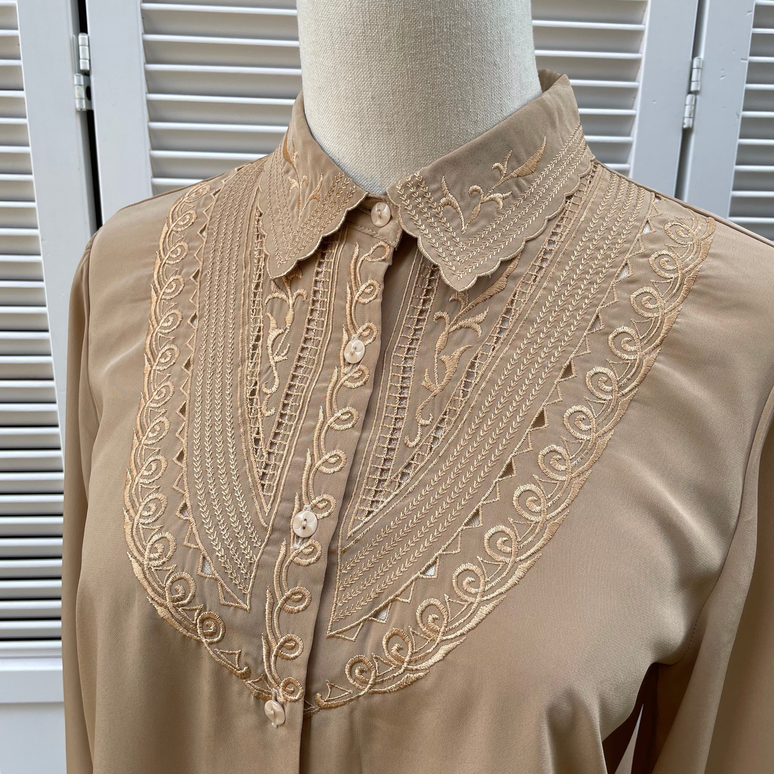 cutwork embroidery beige blouse 〈レトロ古着 カットワーク刺繍 ベージュブラウス 日本製〉