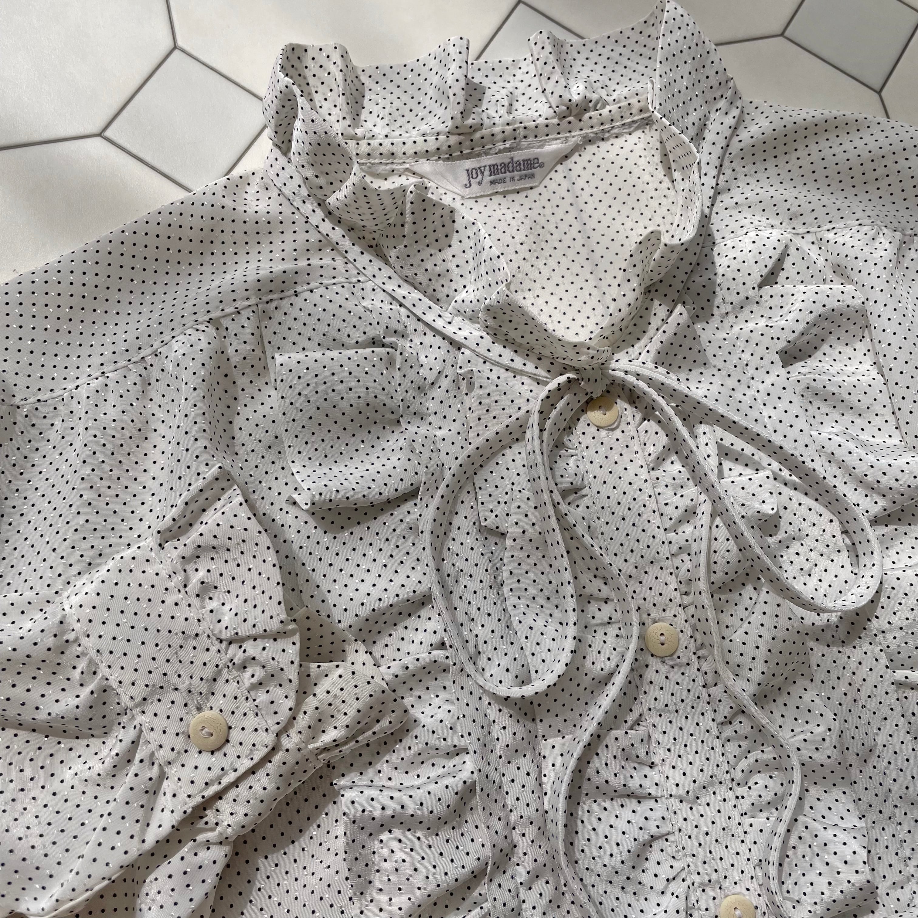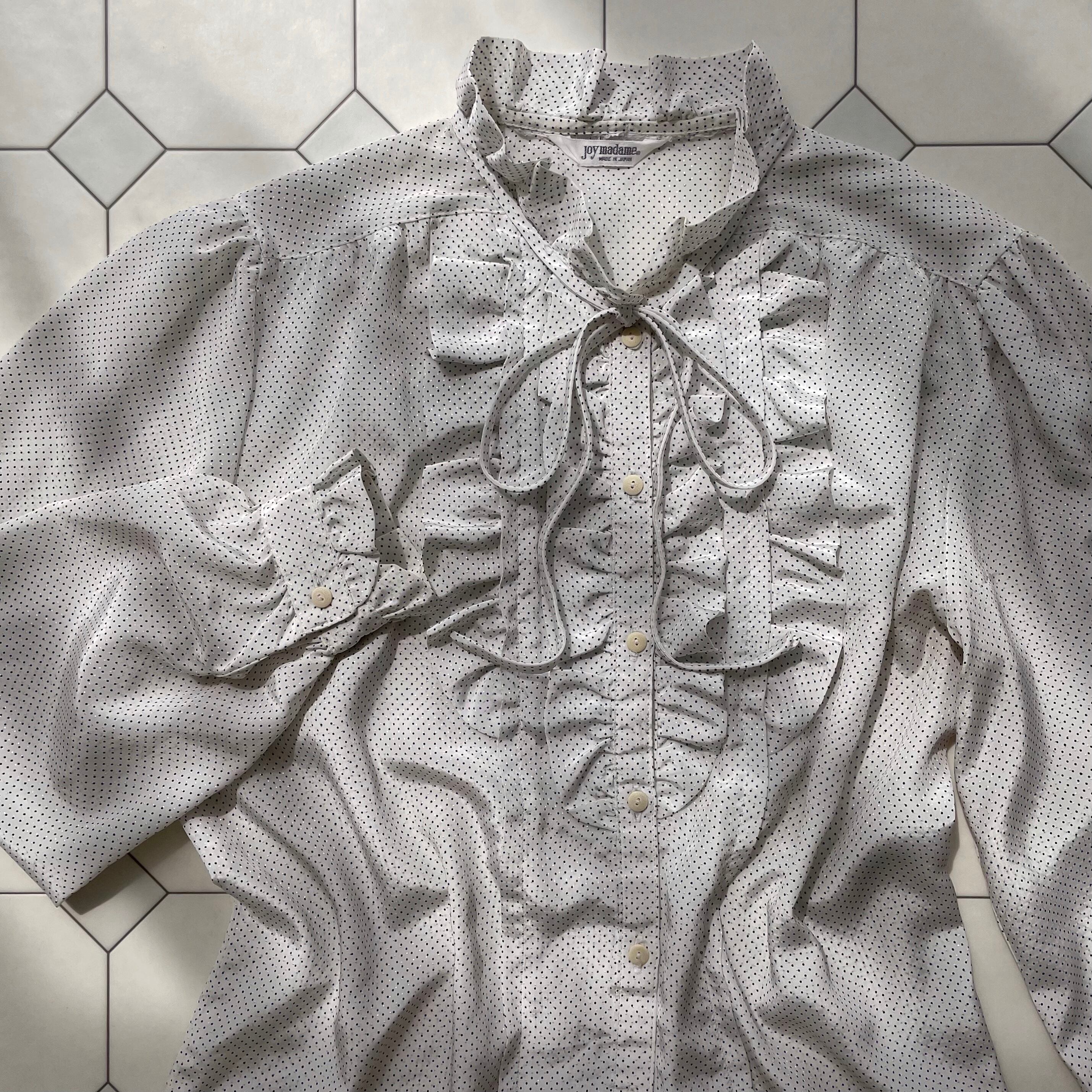 pindot frilled bowtie blouse〈レトロ古着 ピンドット柄 フリルボウタイブラウス 日本製〉