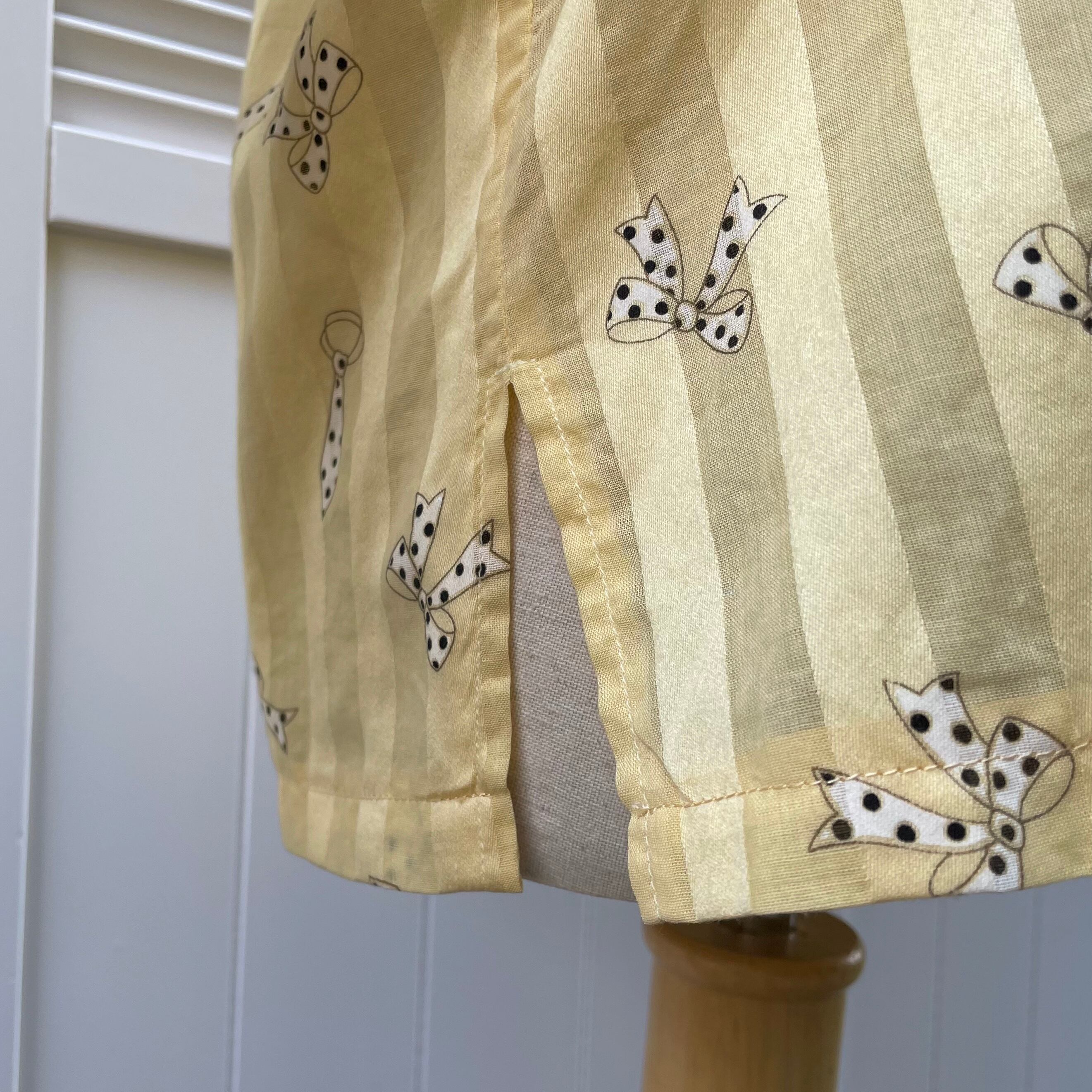ribbon & tie motif striped shirt〈レトロ古着 リボン&ネクタイ柄シャツ 黄色 イエロー 日本製〉