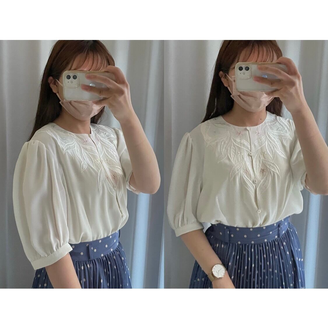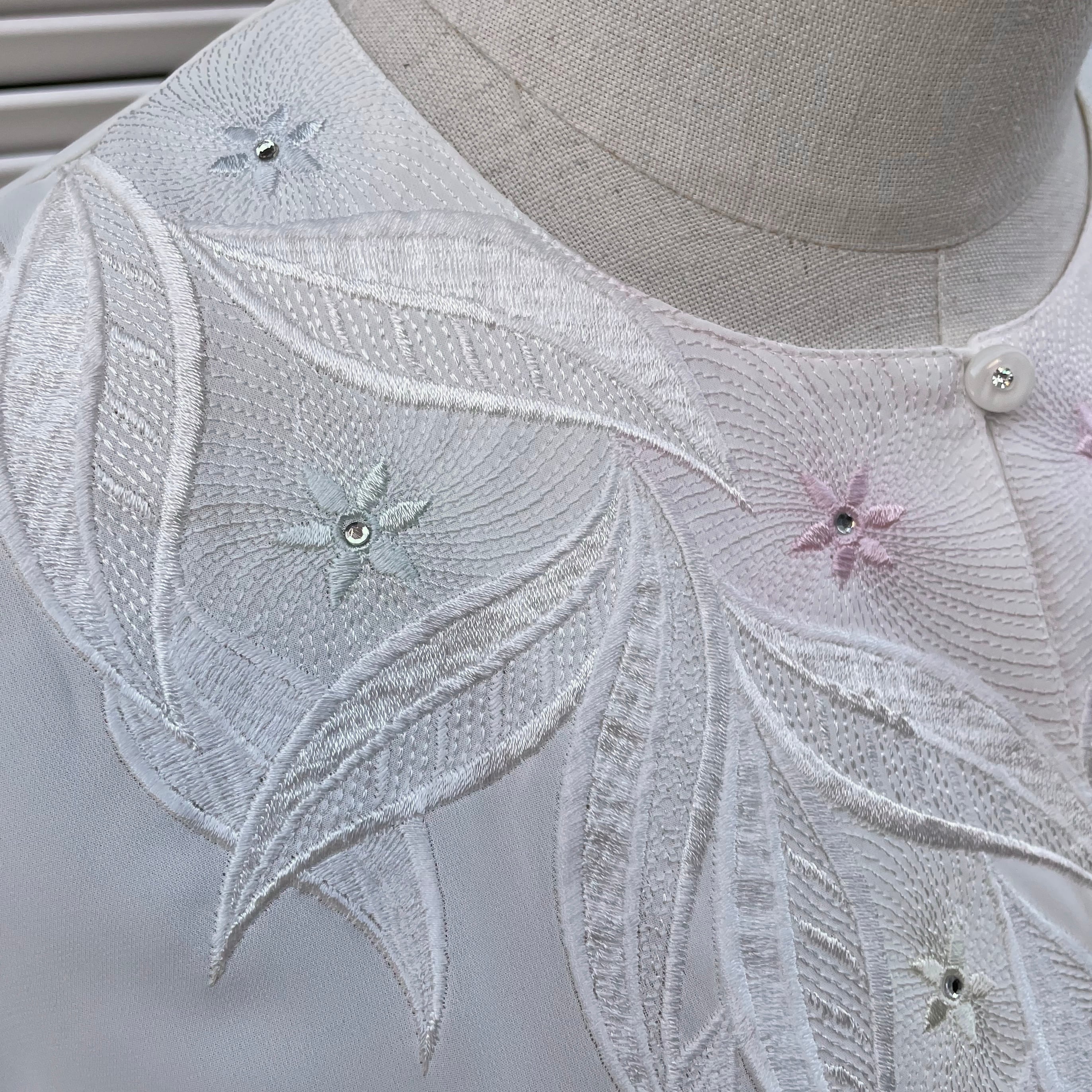グラデーションのように見えるパステルカラーの刺繍がとても素敵なブラウス