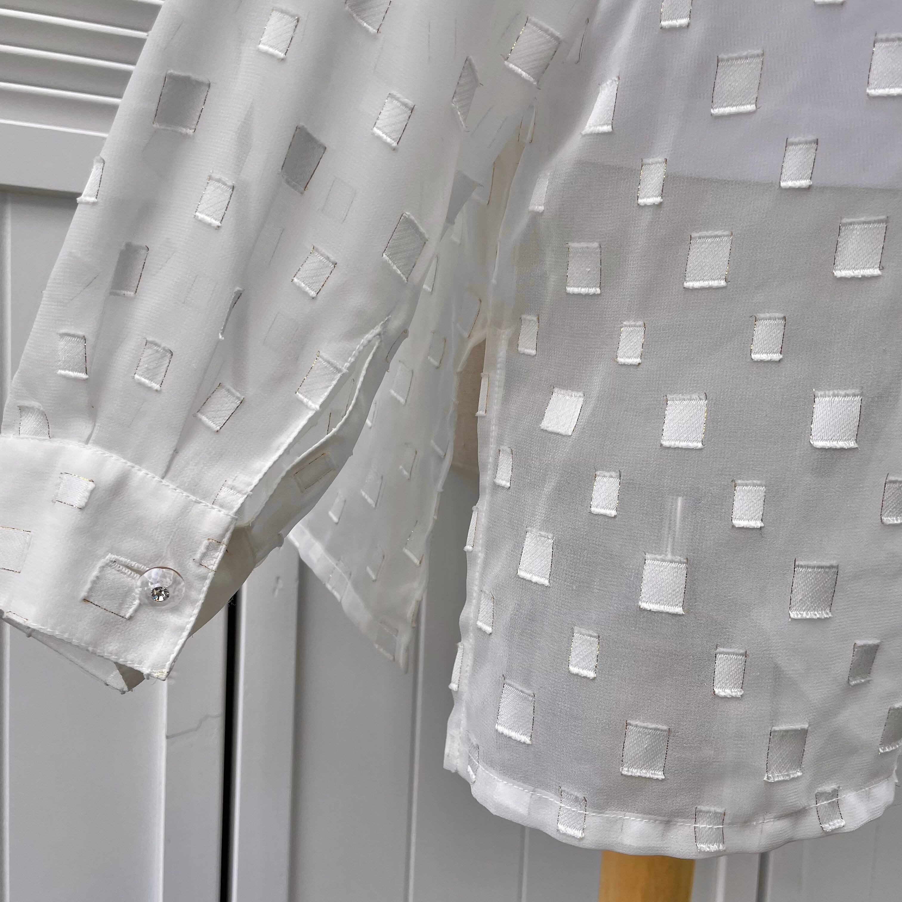 lame mixed jacquard sheer shirt〈レトロ古着 ラメ糸混 ジャガードシアーシャツ 白 ホワイト〉