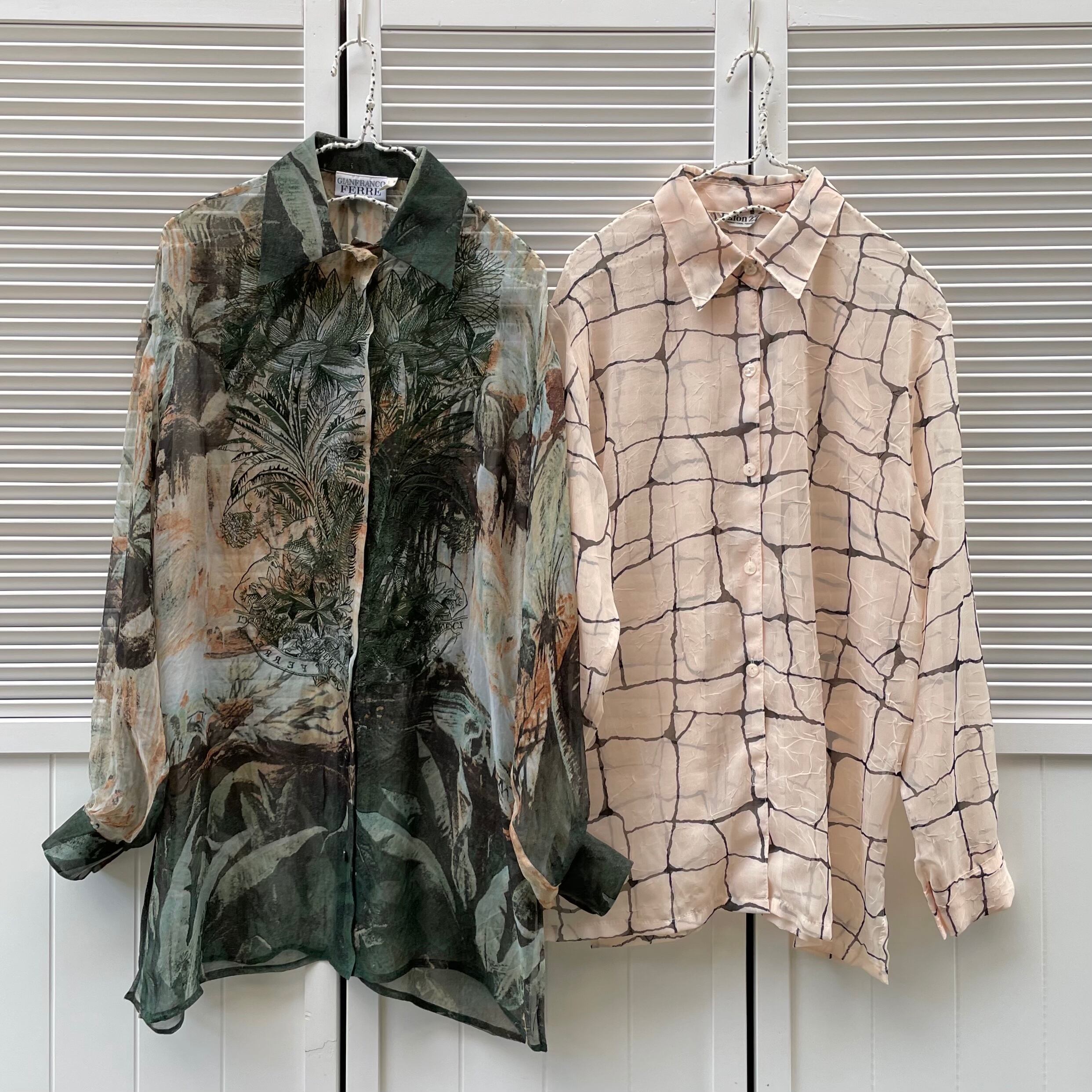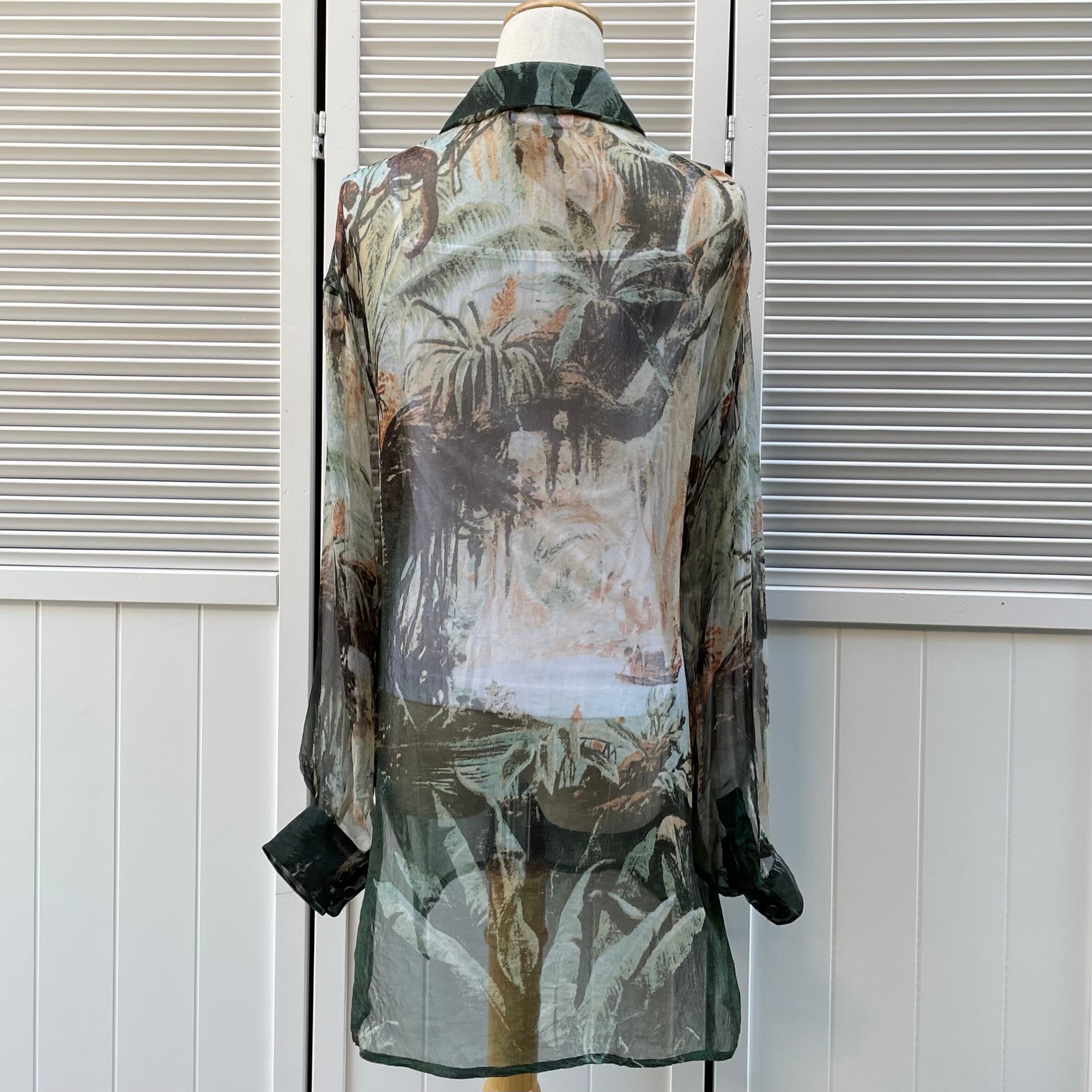 アマゾンのようなプリントが大胆にあしらわれたイタリア製のシアーシャツ