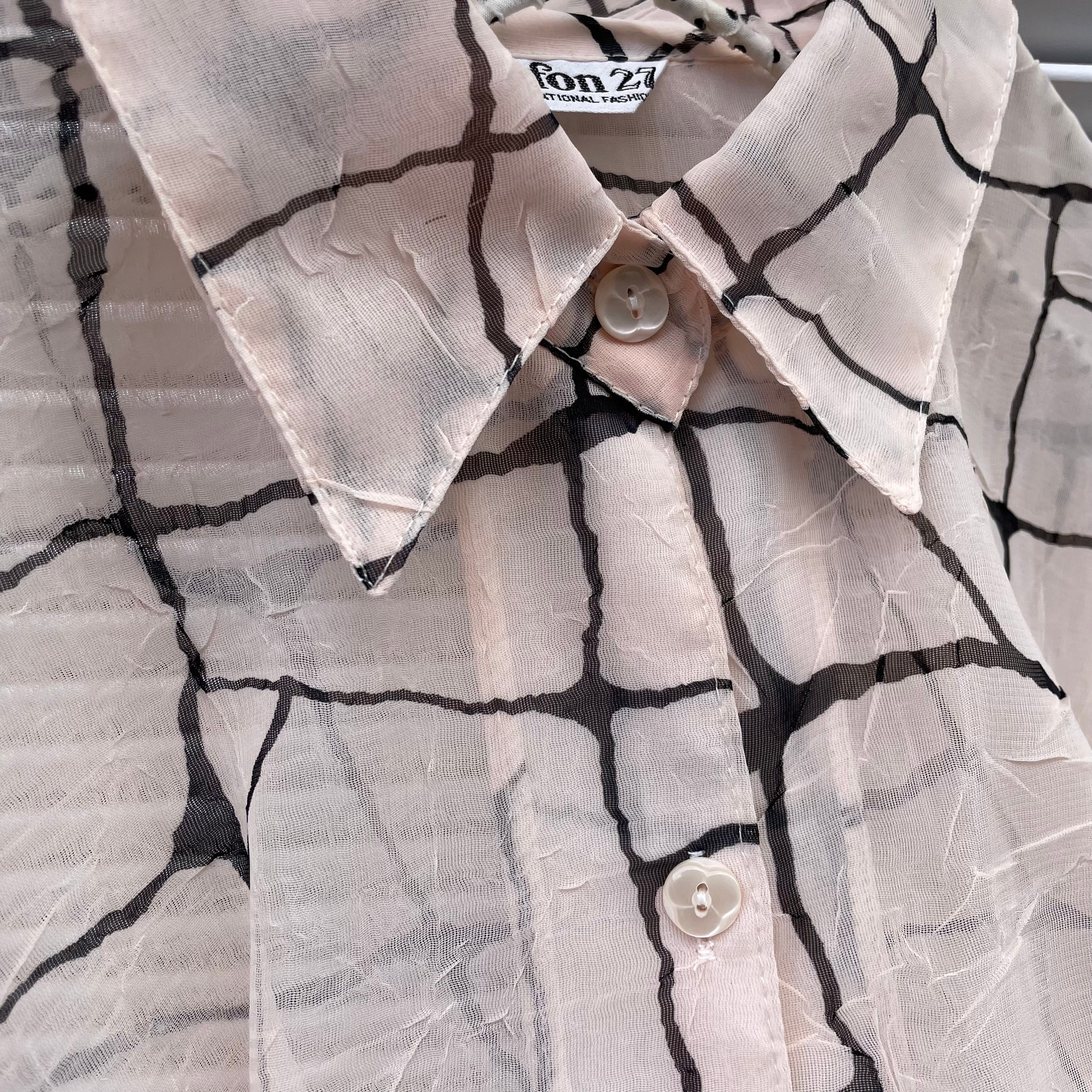 pale pink wrinkle sheer shirt〈レトロ古着 ペールピンク シワ加工 シアーシャツ〉