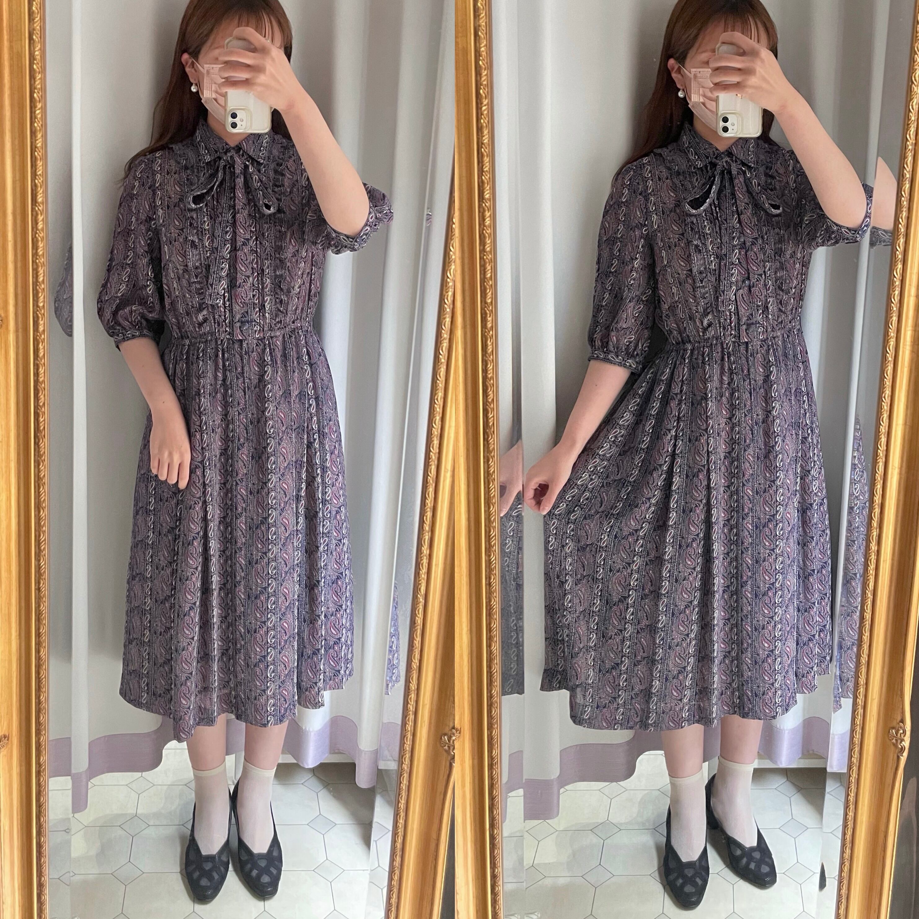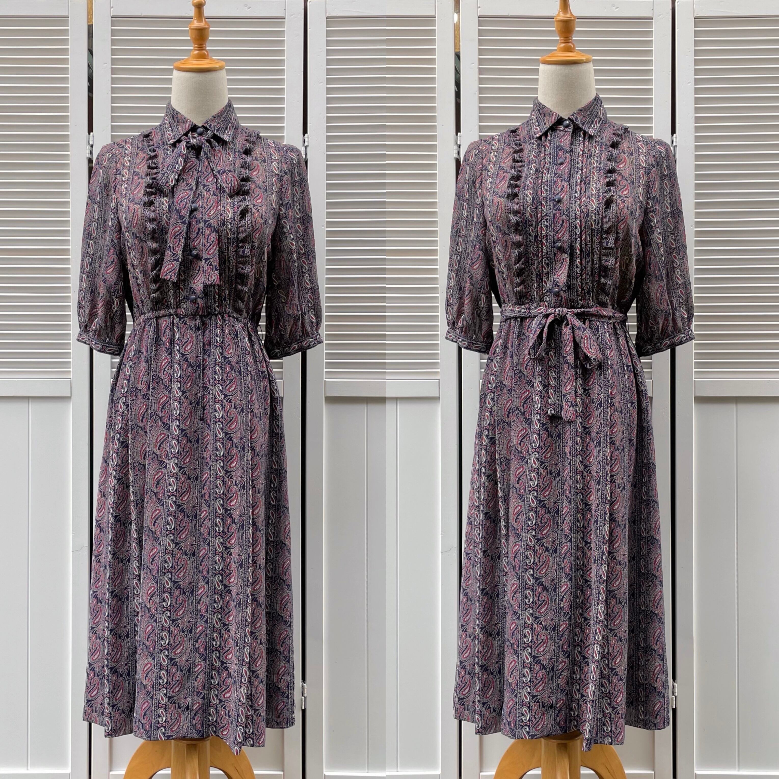 paisley 2way frill dress〈レトロ古着 ペイズリー柄 2way フリルワンピース ボウタイ〉