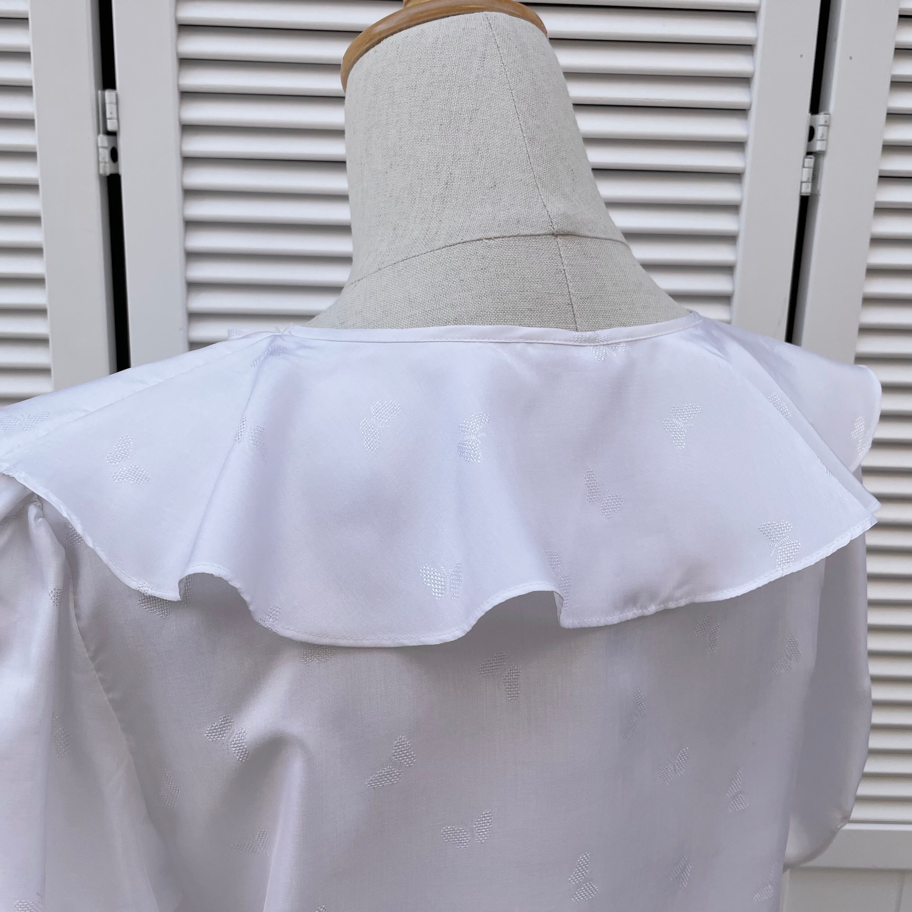 さりげなく蝶々が織り込まれたハナエモリのホワイトブラウス