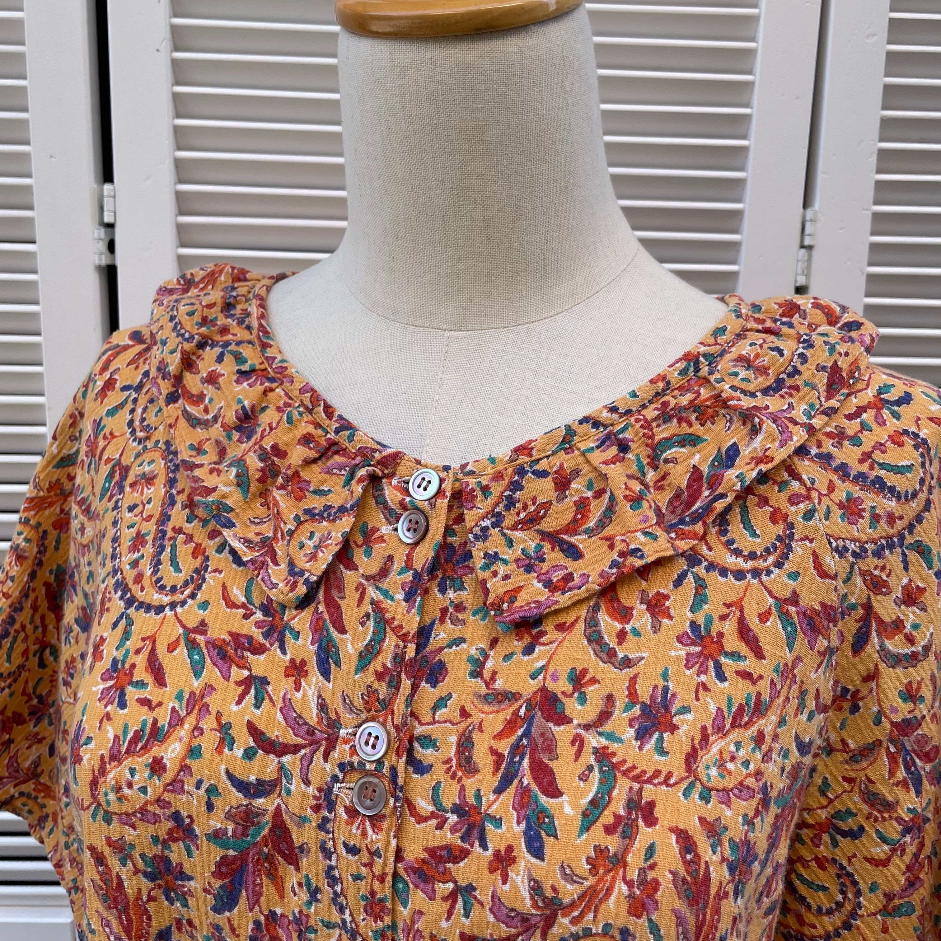 botanical pattern flare sleeve blouse〈レトロ古着 ボタニカル柄 フレアスリーブブラウス マルチカラー〉