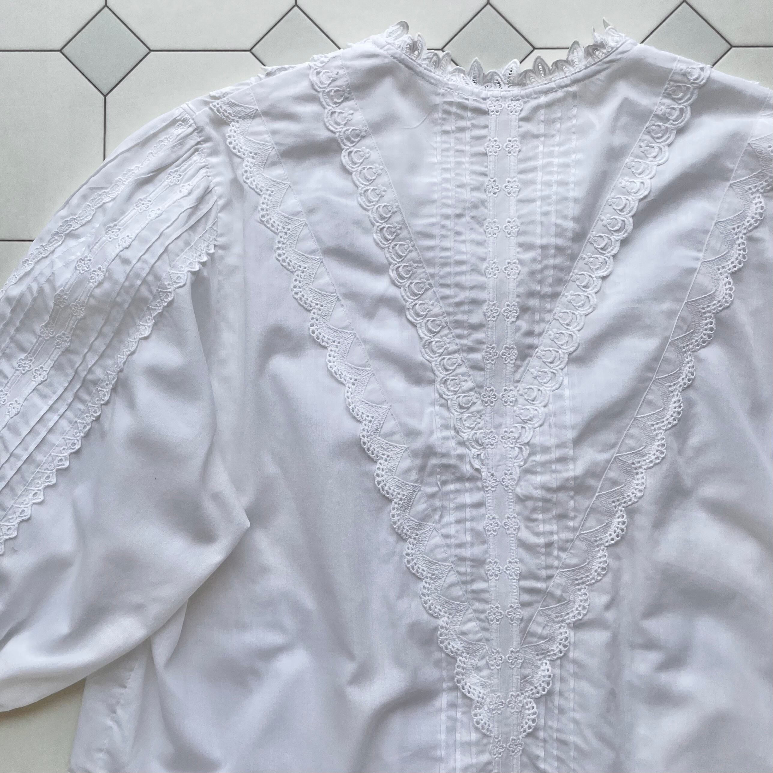 cotton lace puff sleeve blouse〈レトロ古着 コットンレース パフスリーブブラウス 白〉