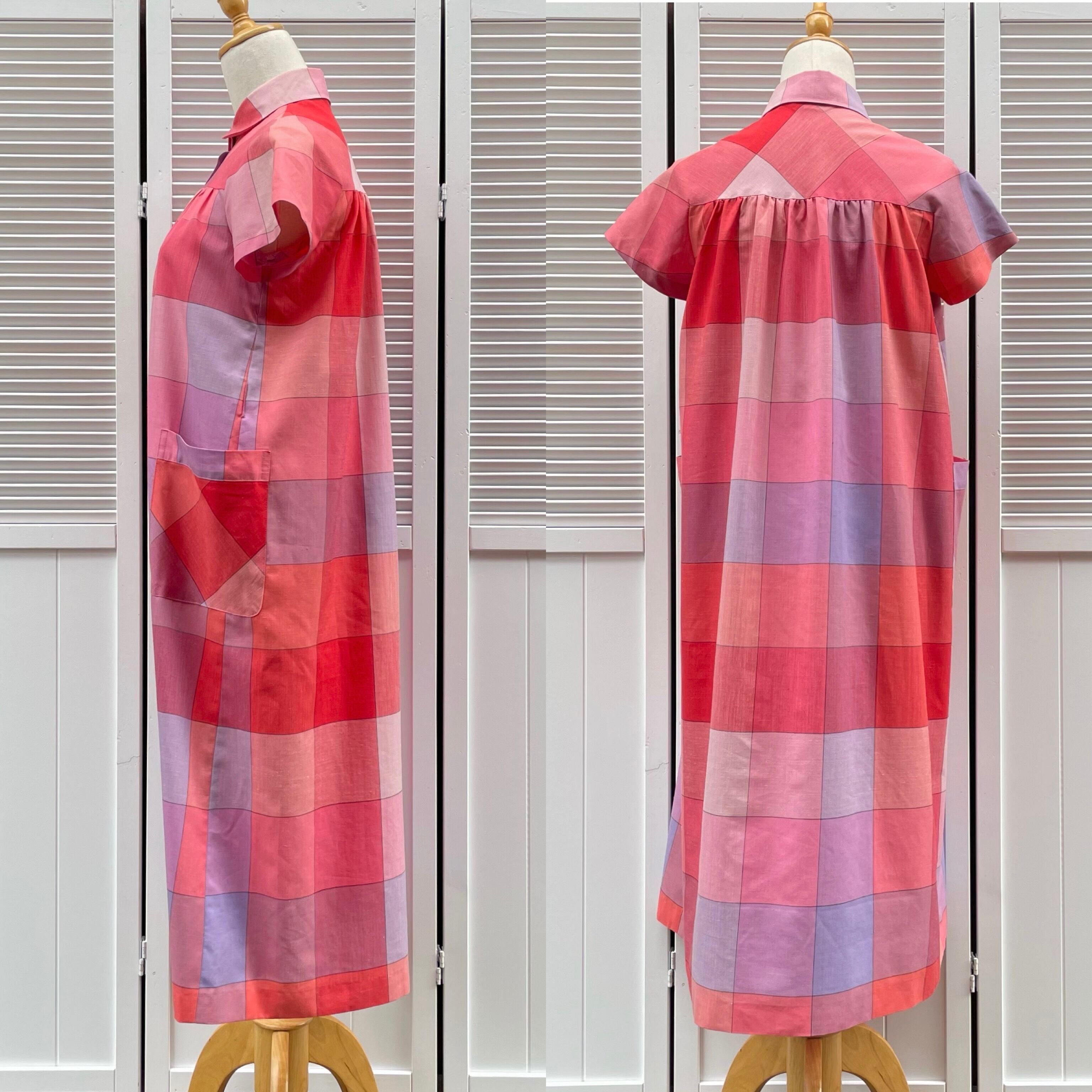 block check A-line dress〈レトロ古着 ブロックチェック Aラインワンピース 赤〉