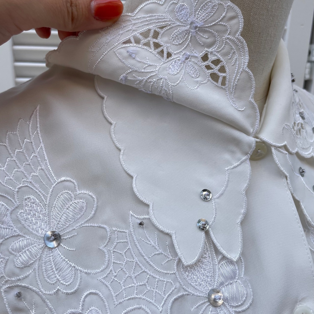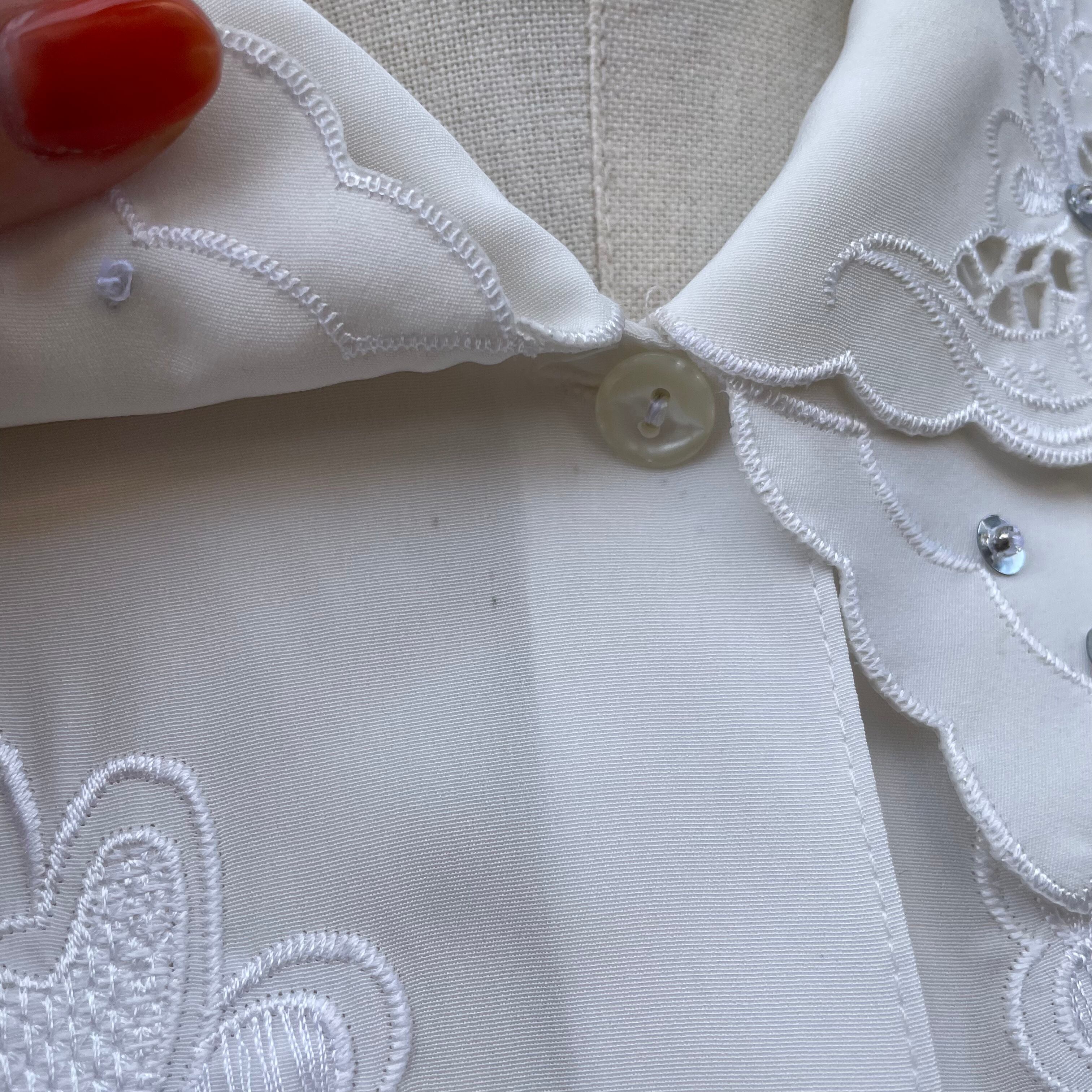 beads embroidery white blouse 〈レトロ古着 ビーズ刺繍 ホワイトブラウス 白〉