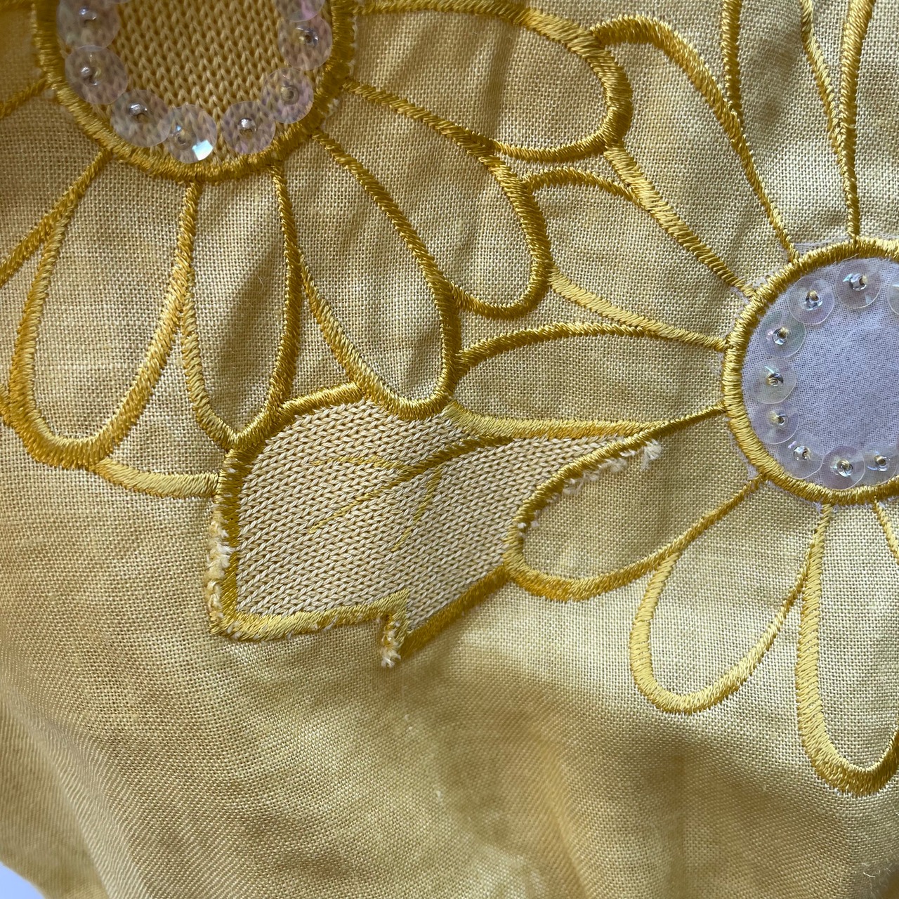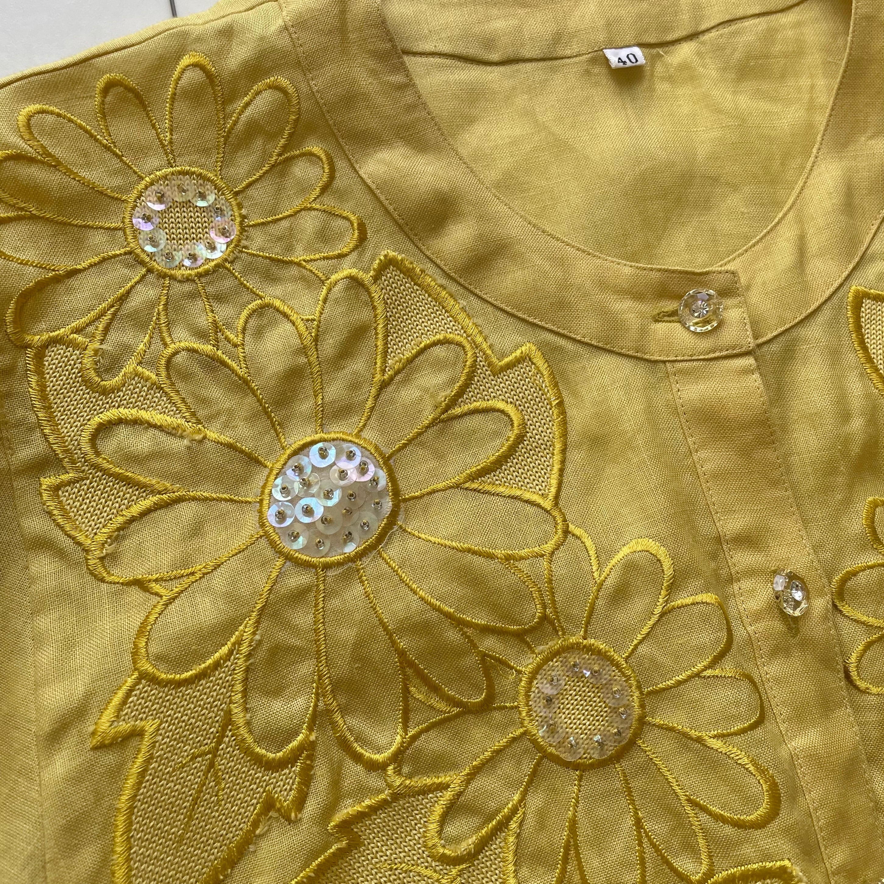向日葵の刺繍にきらきらのスパンコールがあしらわれたブラウス