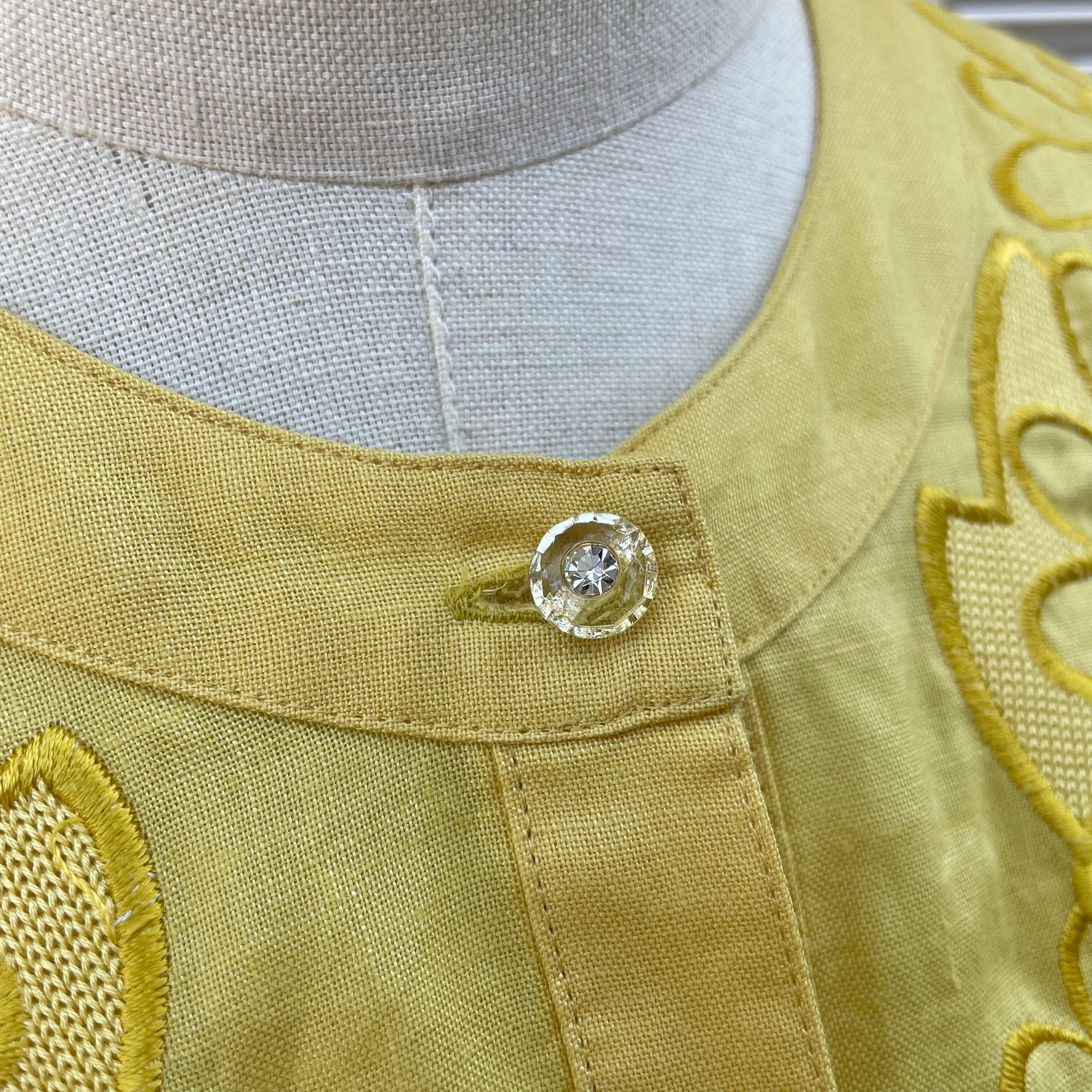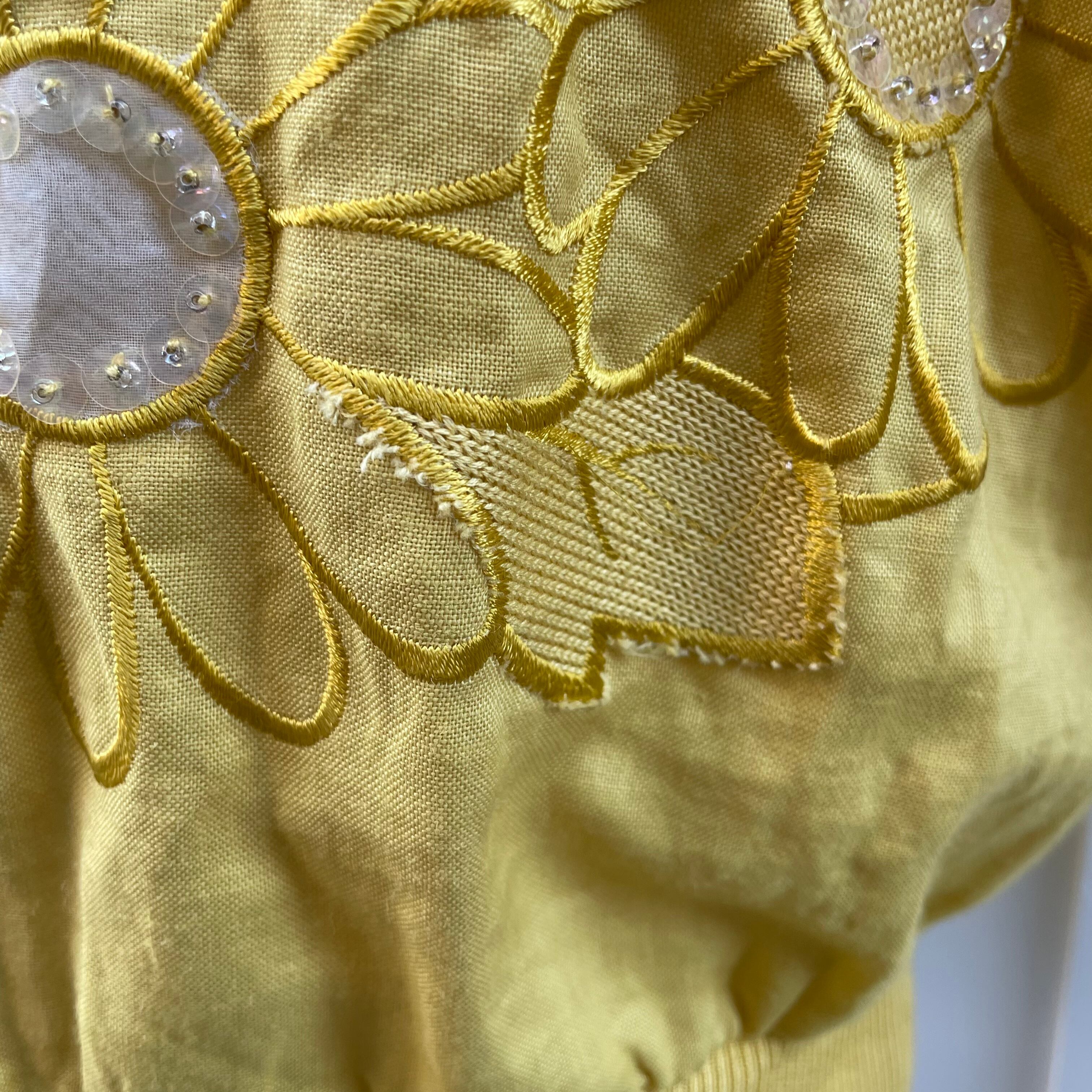 sunflower spangle embroidered blouse 〈レトロ古着 向日葵 スパンコール刺繍 ブラウス ボリューム袖 黄色 イエロー〉