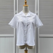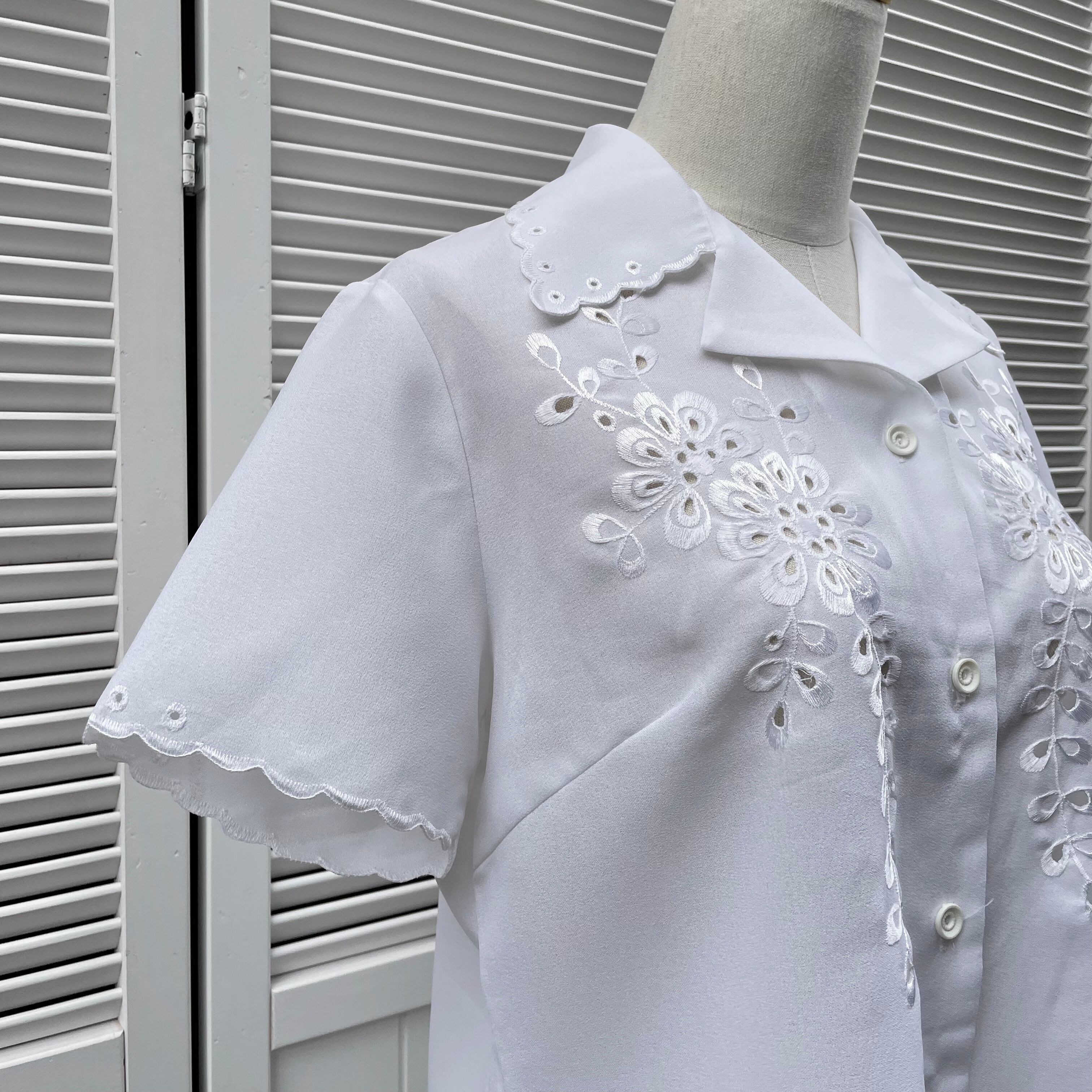 cutwork embroidery white blouse〈レトロ古着 カットワーク刺繍 ホワイトブラウス 白〉