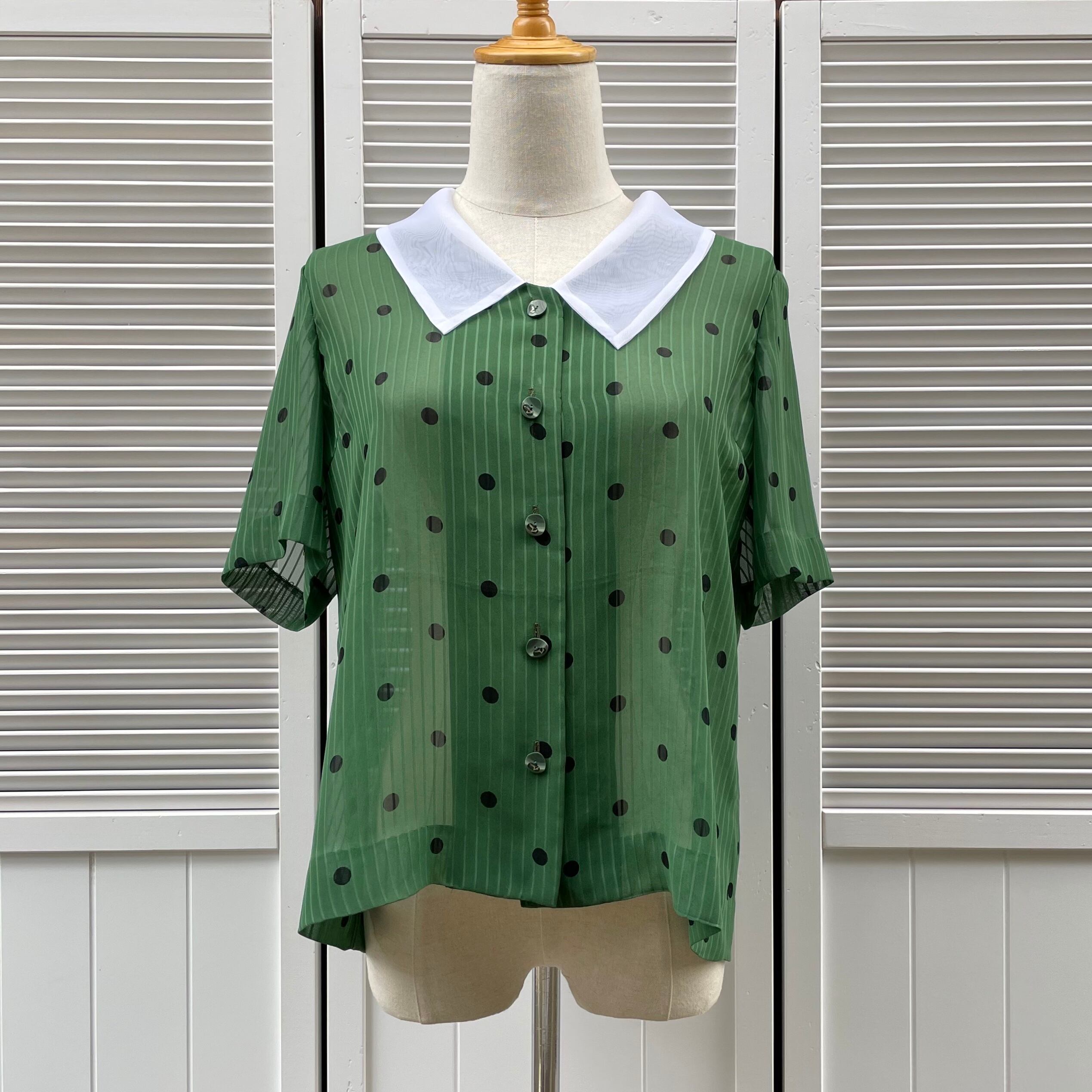 dot & stripe sheer blouse 〈レトロ古着 ドット&ストライプ シアーブラウス 緑 グリーン 水玉〉