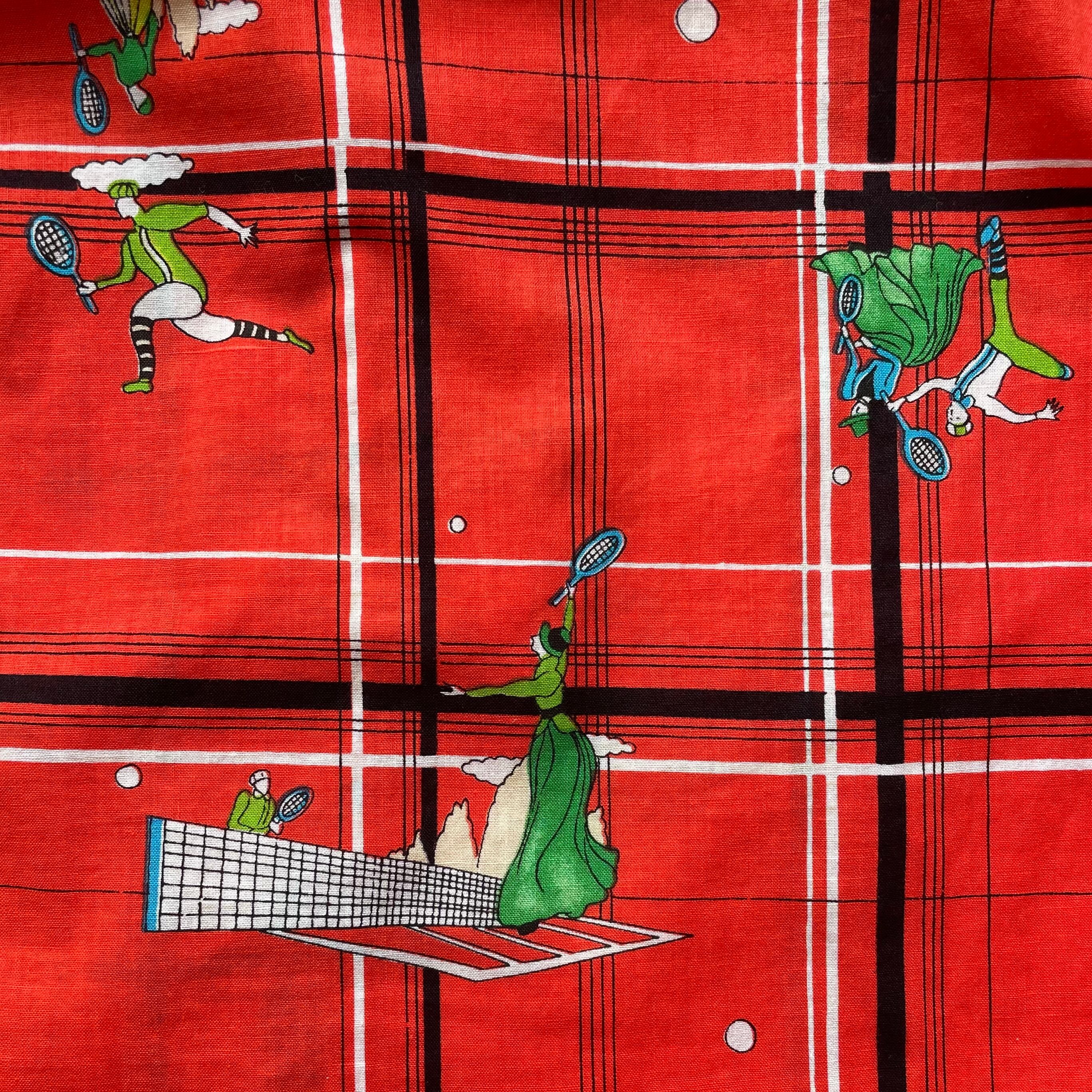 tennis pattern open collar shirt 〈レトロ古着 テニス柄 開襟シャツ チェック 柄シャツ〉