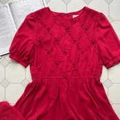 flocky dot red dress〈レトロ古着 フロッキードット レッドワンピース 赤 日本製〉