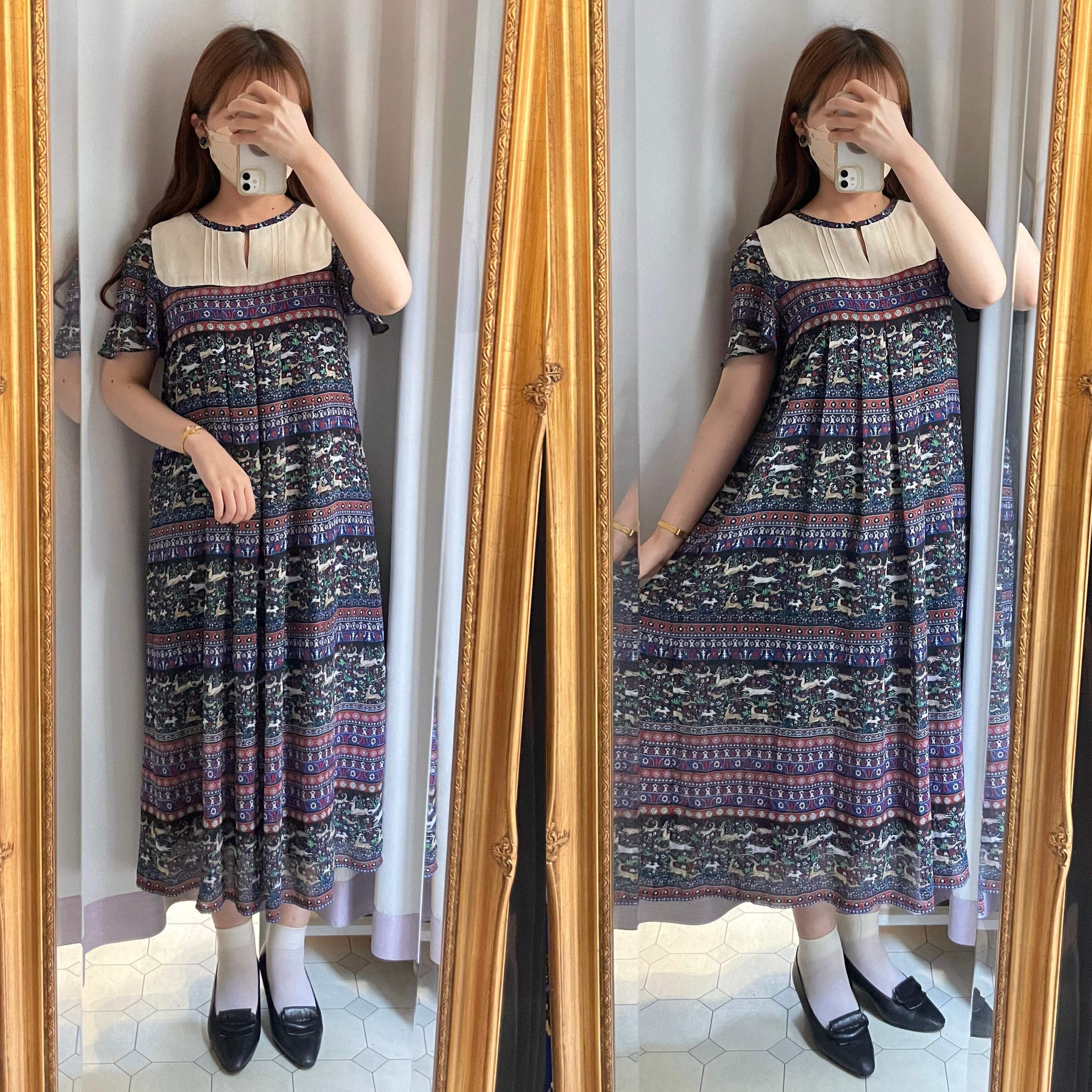 animal motif ethnic dress〈レトロ古着 アニマルモチーフ エスニック柄ヨークワンピース〉