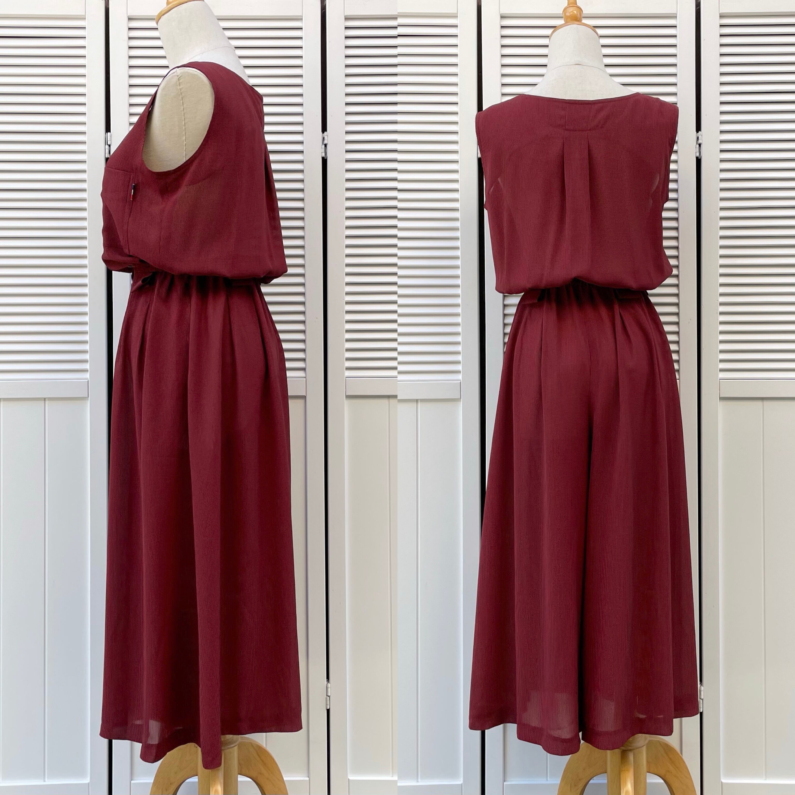 gingham check rompers〈レトロ古着 ギンガムチェック ロンパース 赤 レッド ボルドー オールインワン〉