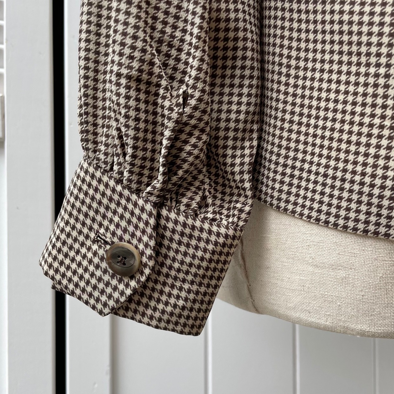 houndstooth round collar blouse〈レトロ古着 千鳥格子 ラウンドカラーブラウス 茶色 ブラウン〉