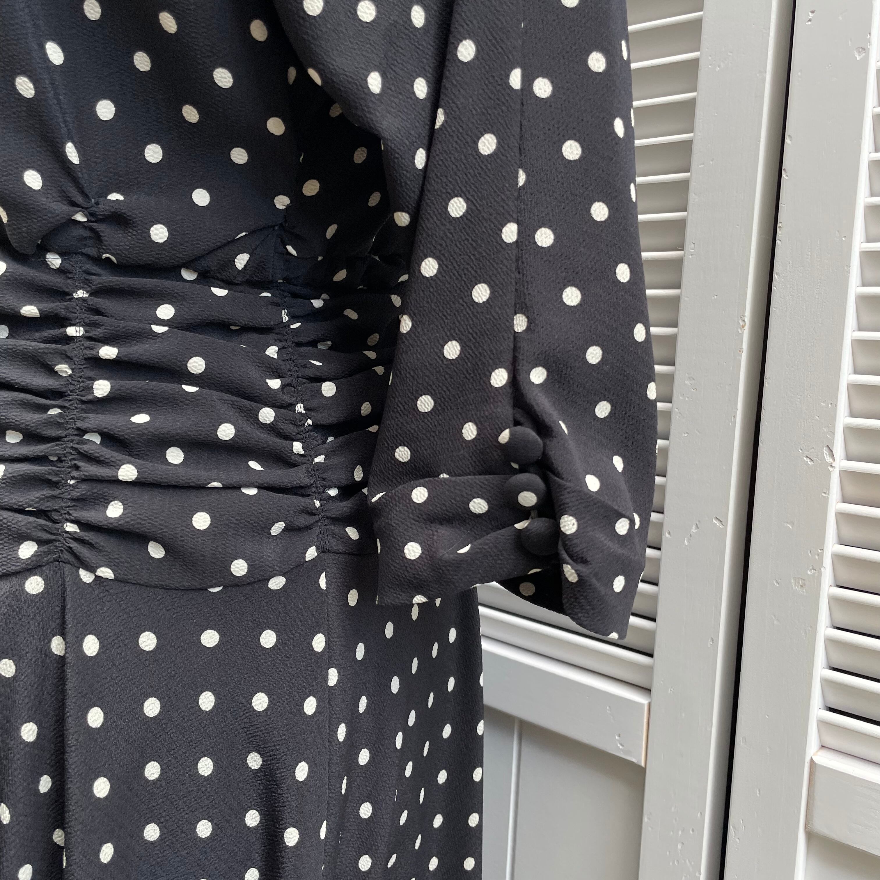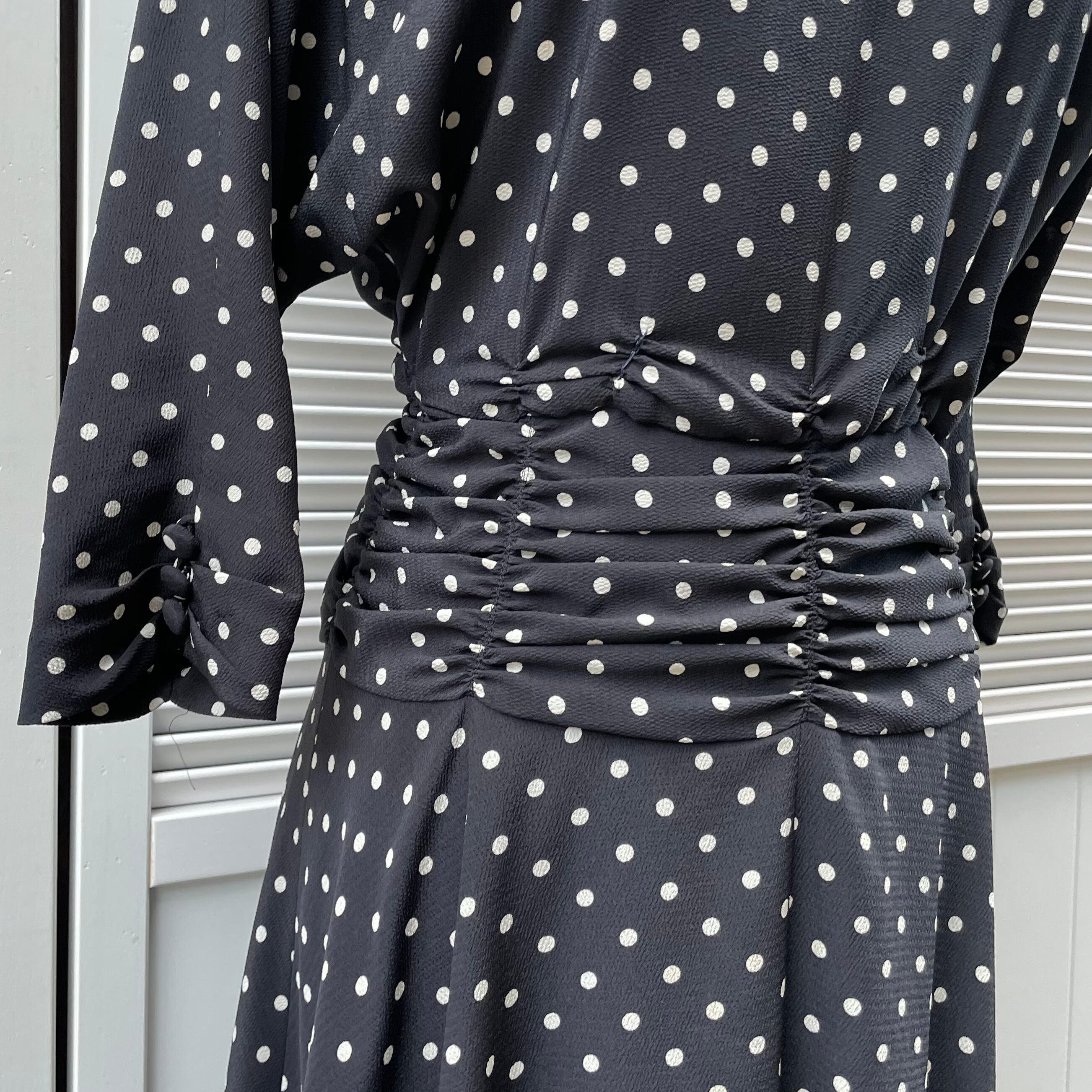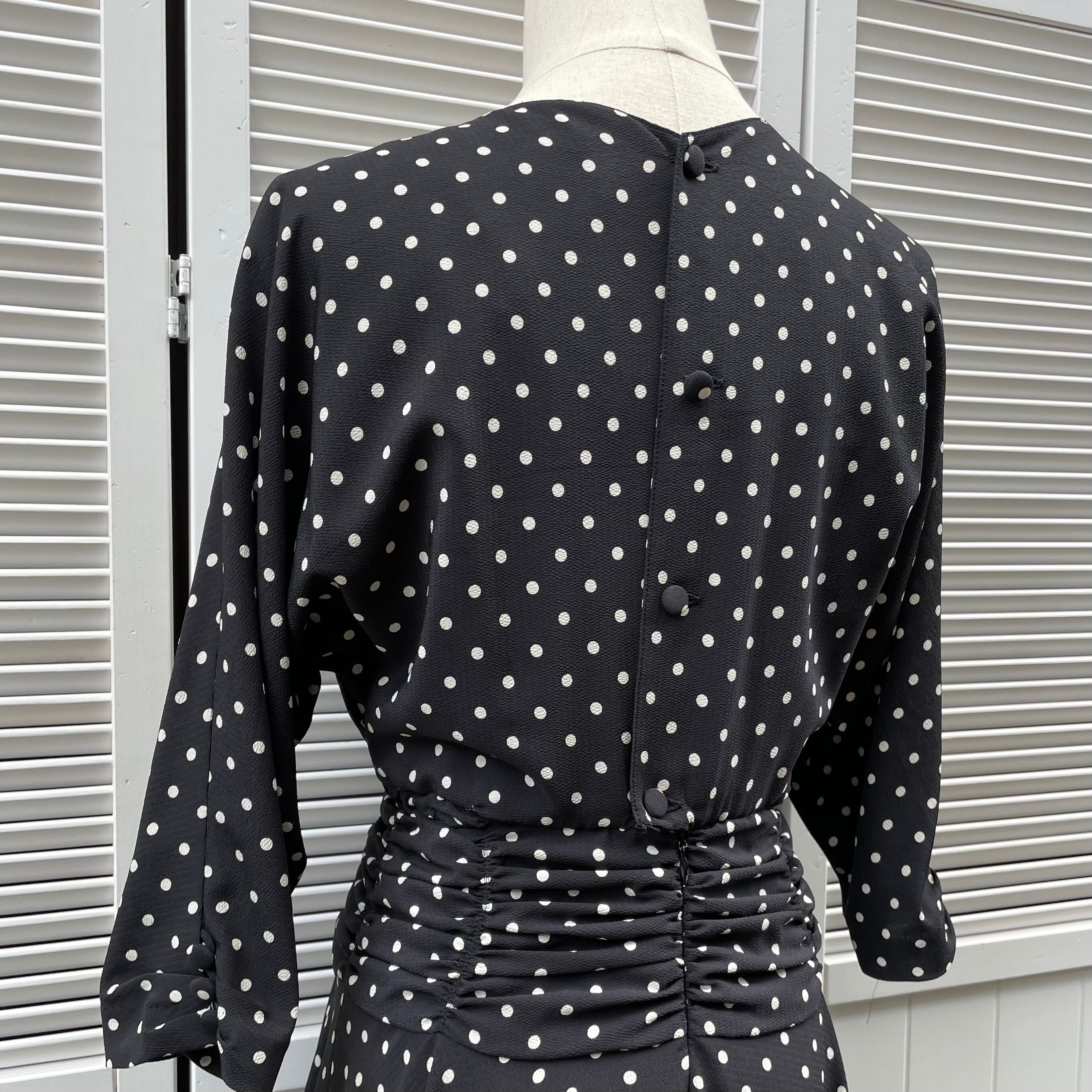 drape design dot dress〈レトロ古着 ドレープデザインドットワンピース 水玉 ブラック 黒 日本製 ジャパンヴィンテージ〉