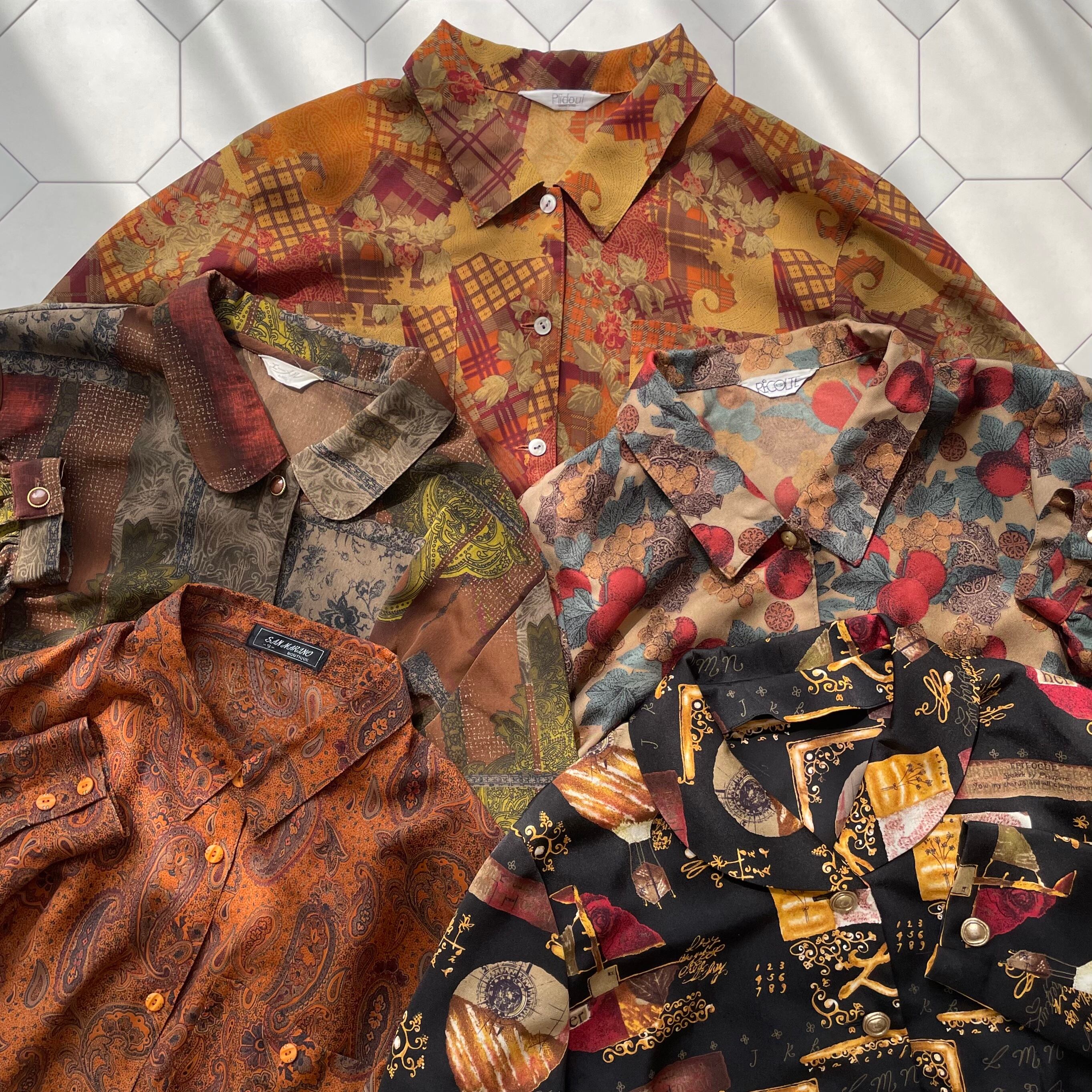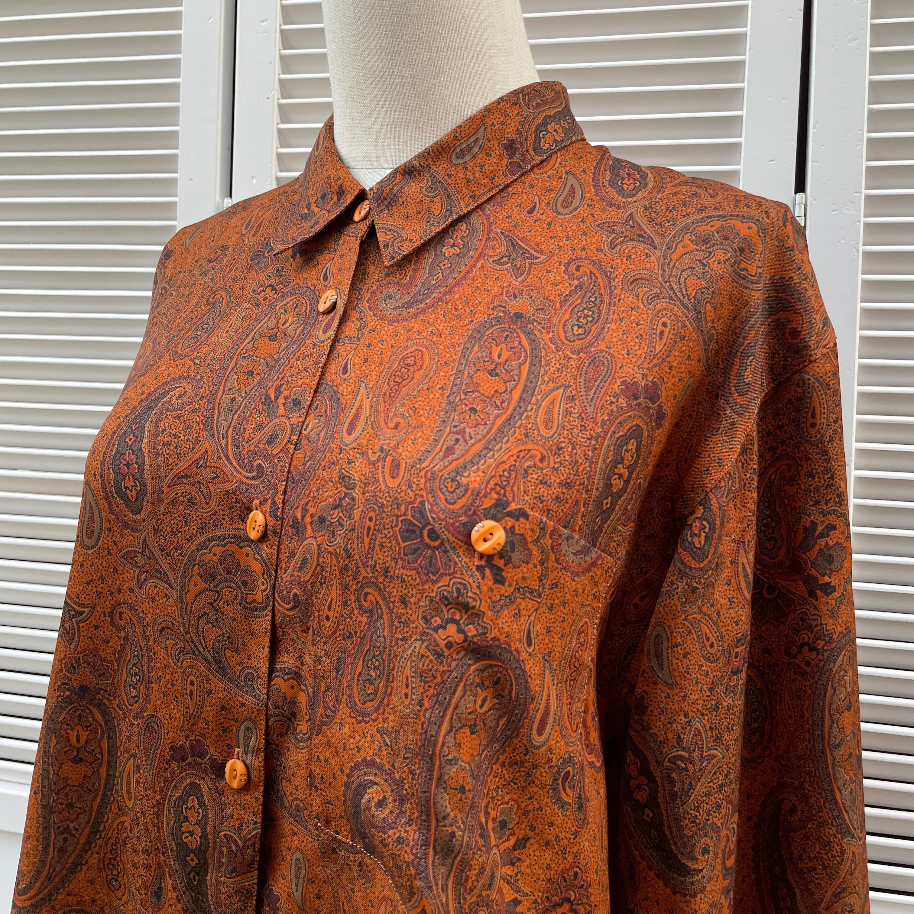 orange paisley shirt 〈レトロ古着 オレンジペイズリー柄シャツ〉