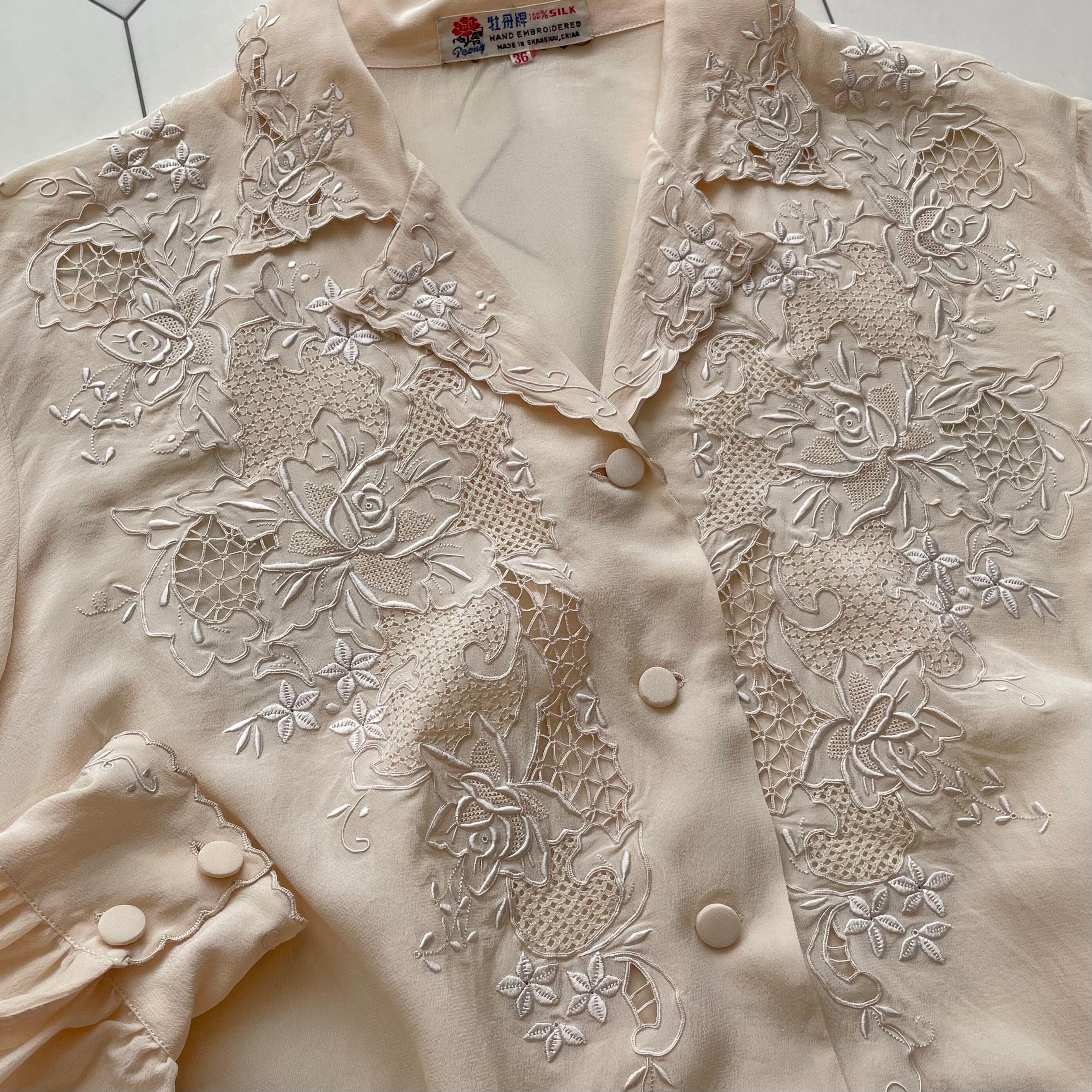 中国三大刺繍の一つである汕頭刺繍のシルクブラウス