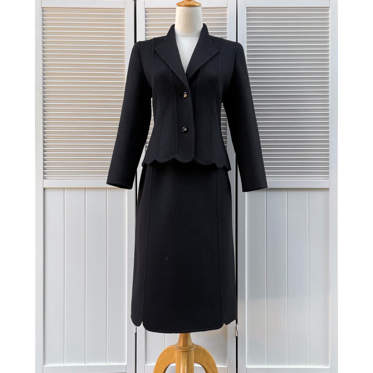 scalloped hem cashmere setup〈レトロ古着 スカラップヘム カシミヤ セットアップセットアップ 黒 ブラック〉