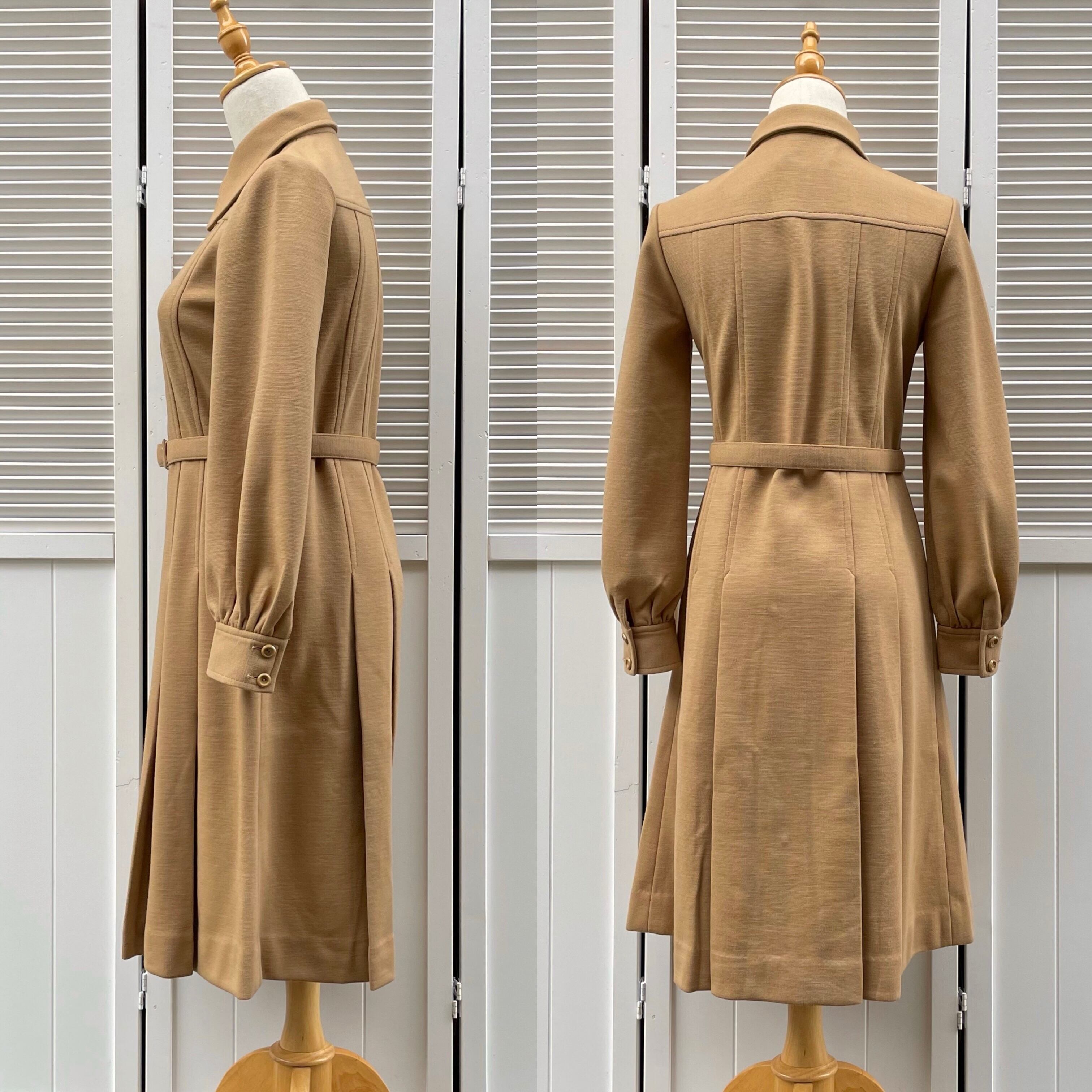 シンプルなデザインにシルエットの美しさ、仕立ての良さが際立つベージュのワンピース
