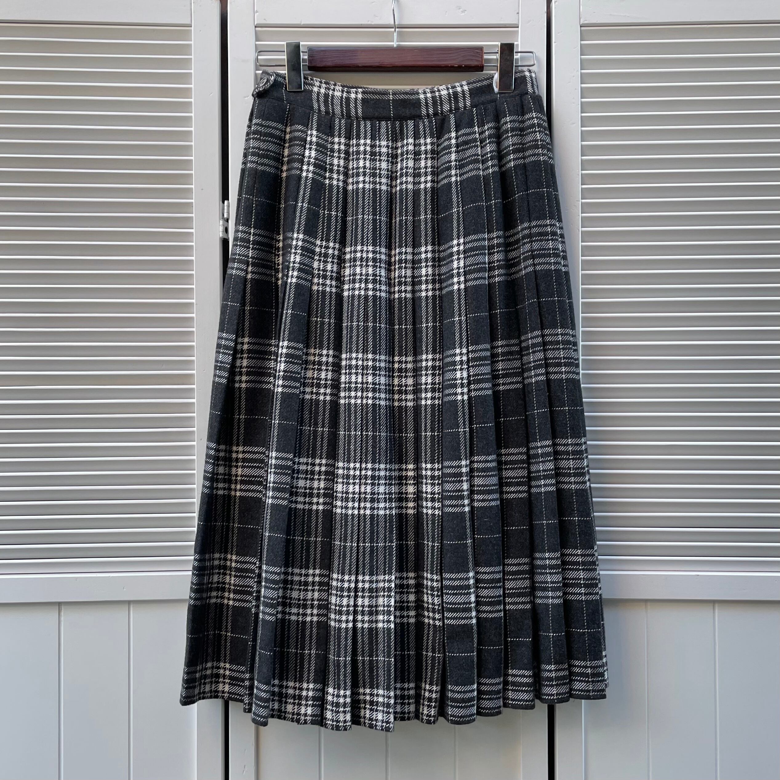 monotone tartan plaid pleated skirt〈レトロ古着 モノトーン タータンチェック プリーツスカート〉
