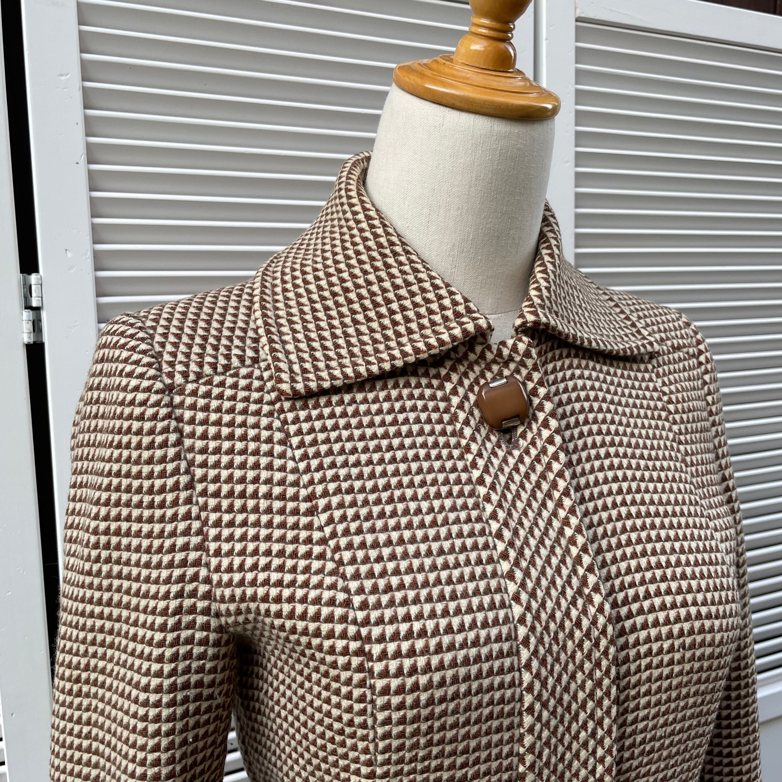 brown geometric tweed balmacaan coat 〈レトロ古着 幾何学模様 ツイード ステンカラーコート ブラウン〉