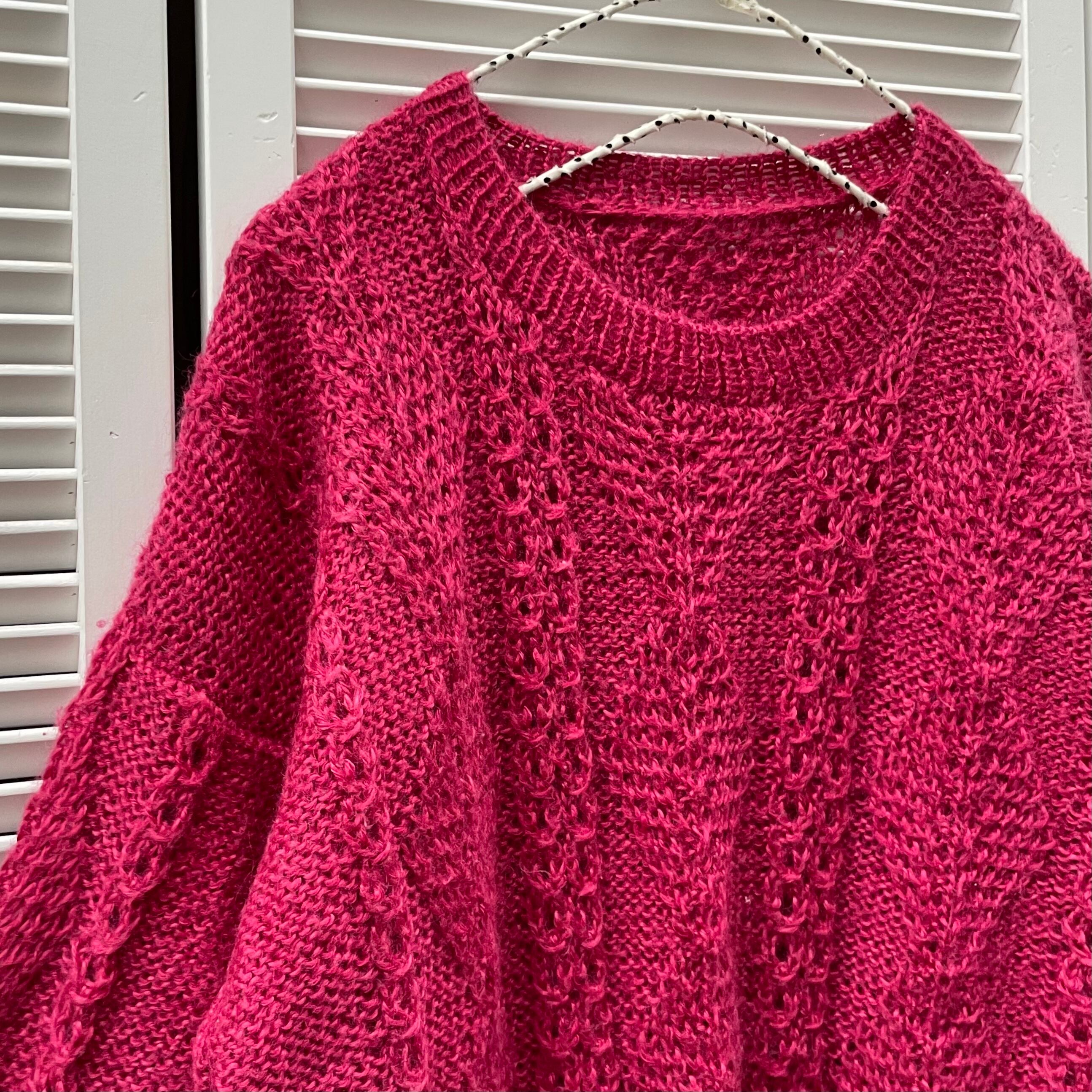 fuchsia pink low gauge knit 〈レトロ古着 フューシャピンク ローゲージニット〉