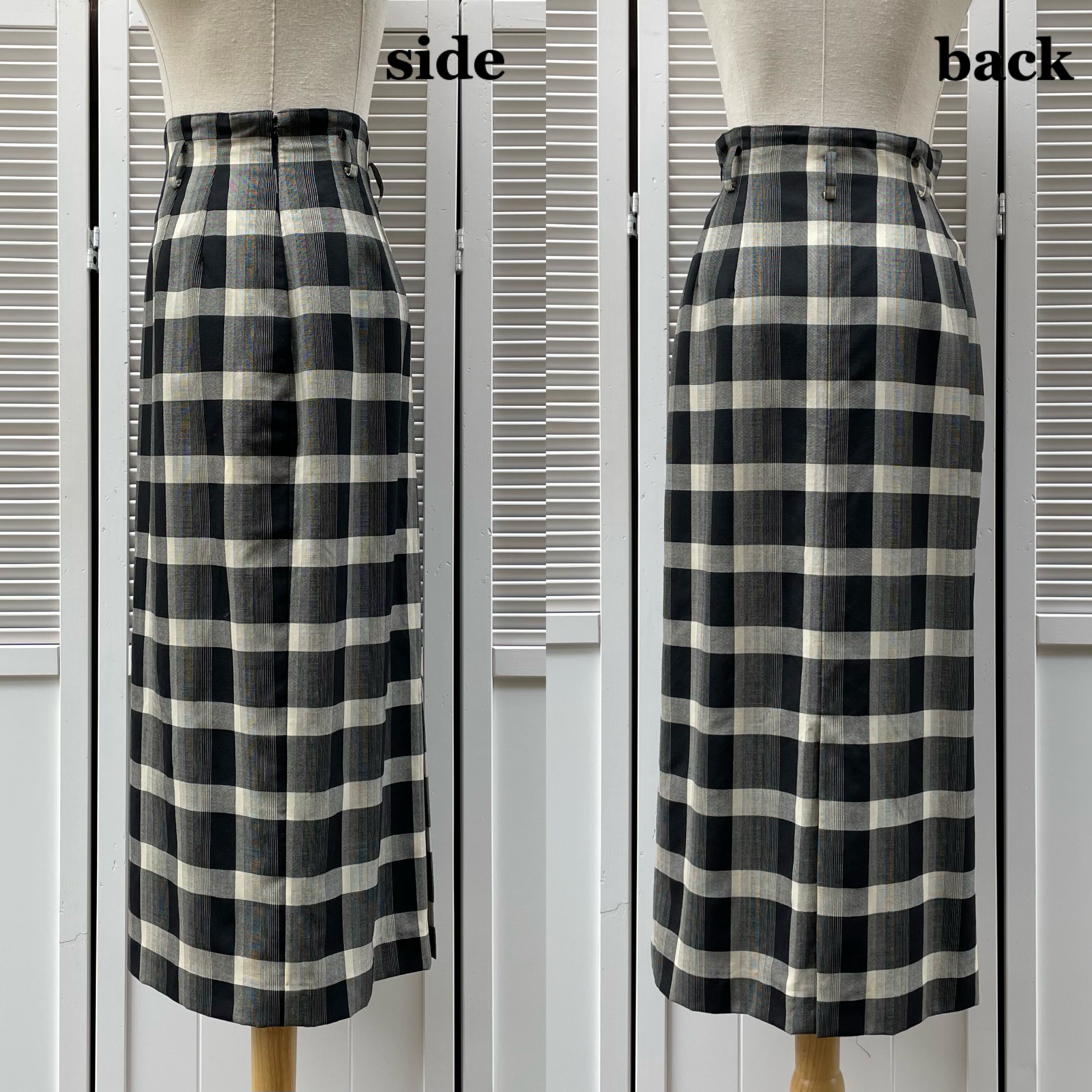 monotone plaid tight skirt 〈レトロ古着 モノトーン チェック タイトスカート 日本製〉