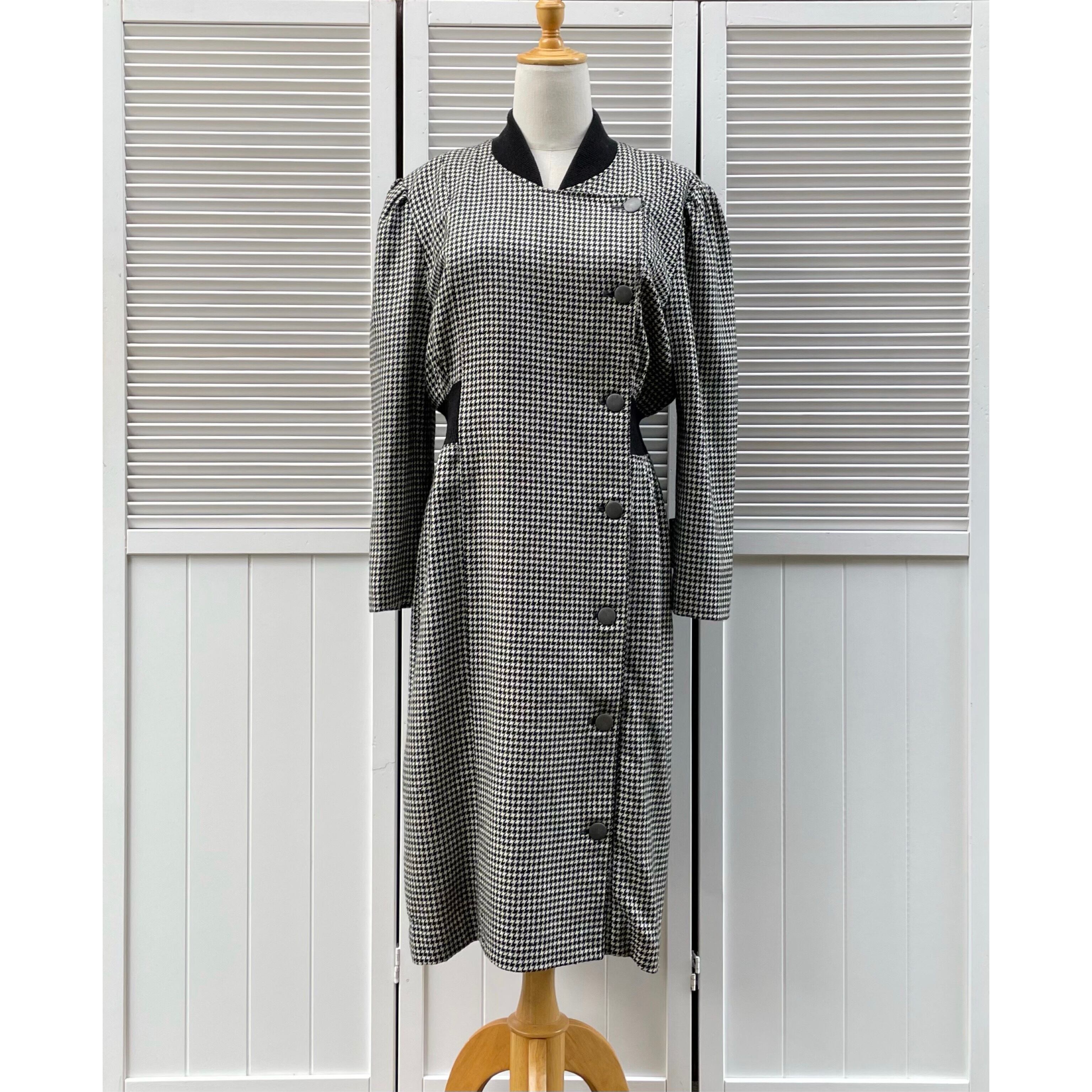 rib design houndstooth tight dress〈レトロ古着 リブデザイン 千鳥柄 タイトワンピース 日本製〉