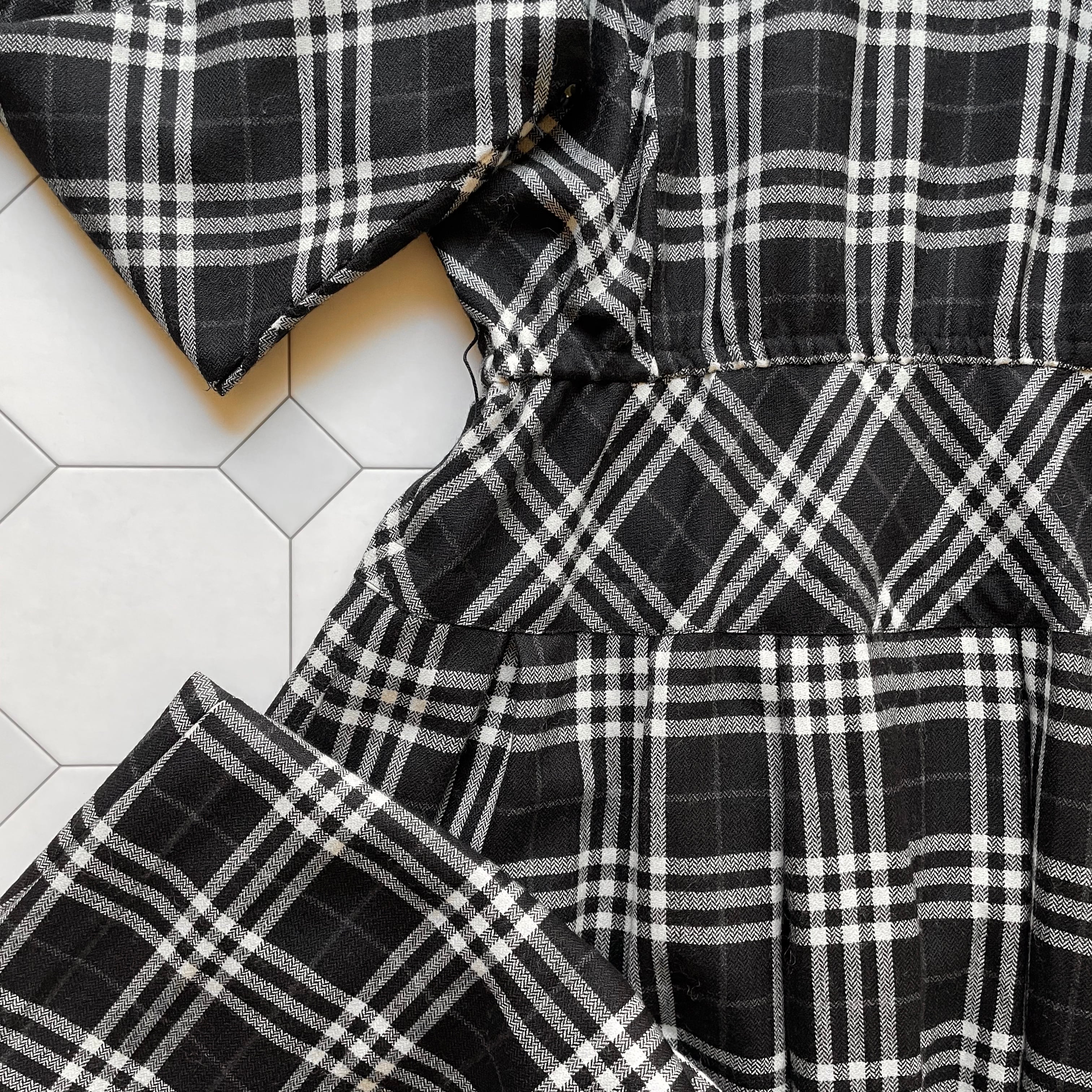 puff sleeve tartan check dress〈レトロ古着 パフスリーブ タータンチェック ワンピース 日本製〉