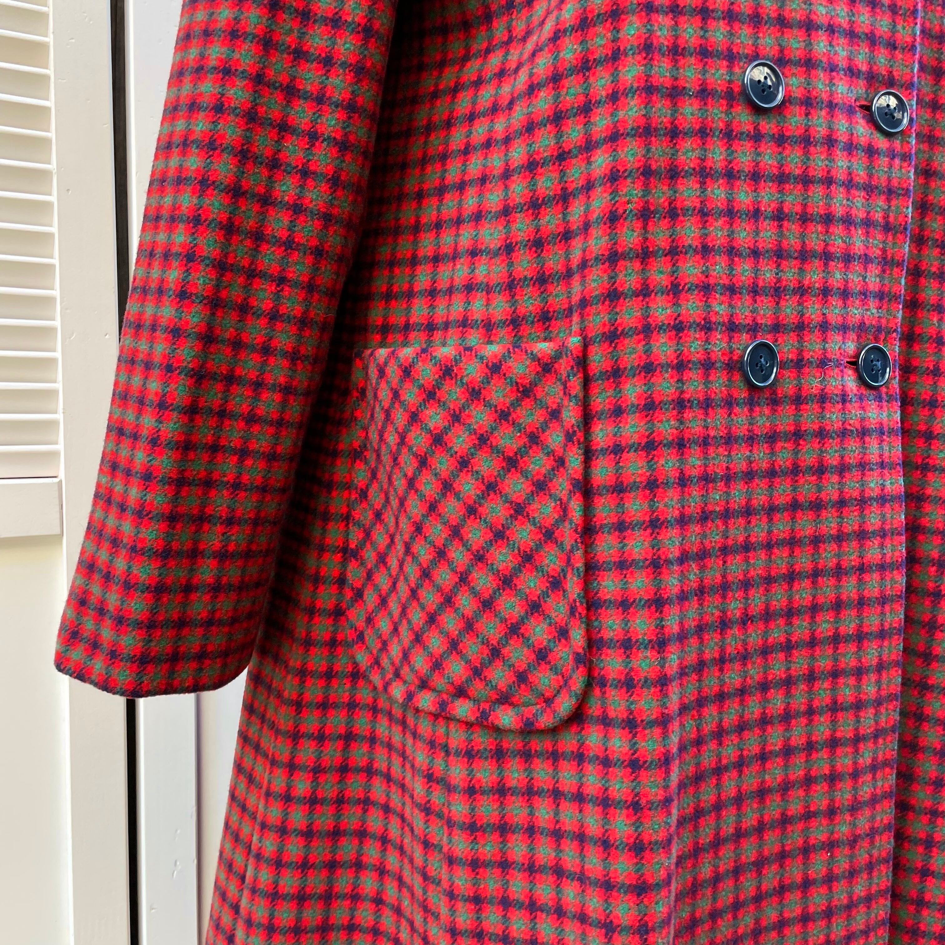 plaid double button coat 〈レトロ古着 チェック柄 ダブルボタン ステンカラーコート アウター 赤 レッド〉