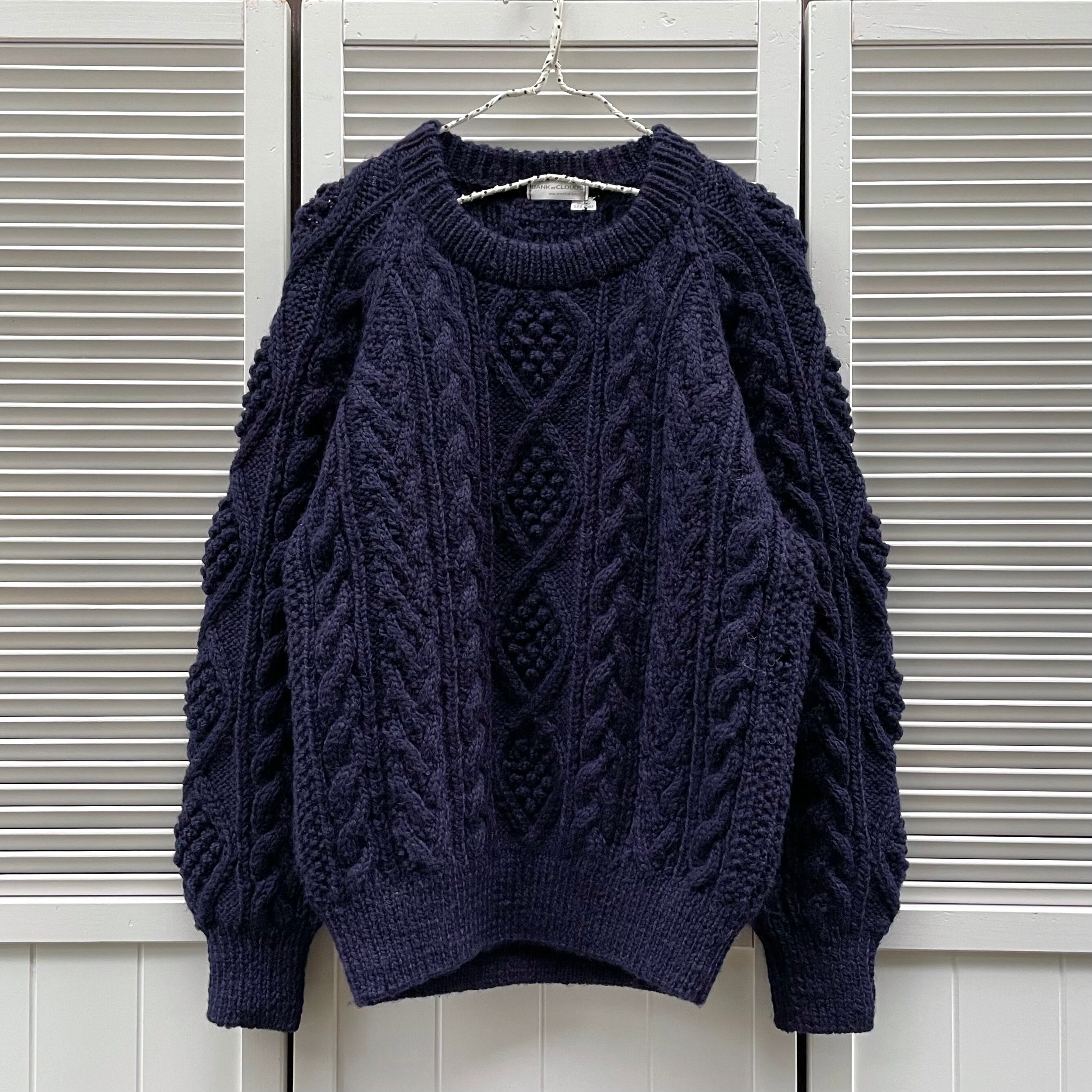 navy aran knit sweater 〈レトロ古着 ネイビー アランニット セーター フィッシャーマンニット〉