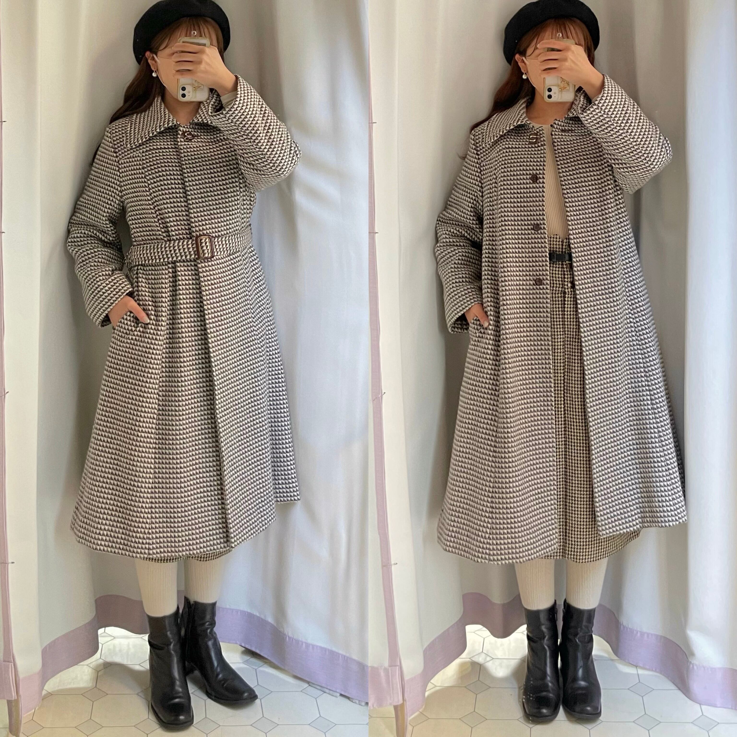 blue geometric tweed balmacaan coat 〈レトロ古着 幾何学模様 ツイード ステンカラーコート 青〉