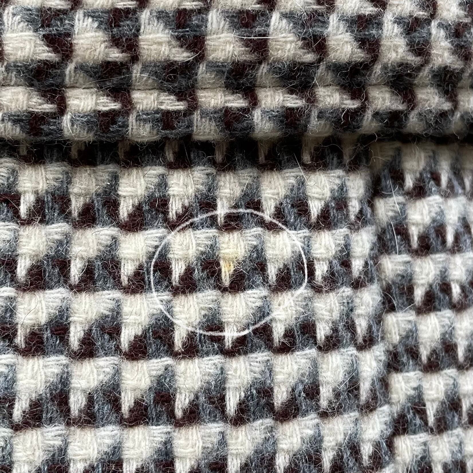3色の太い糸で幾何学模様が織られたレトロなテキスタイルが魅力的