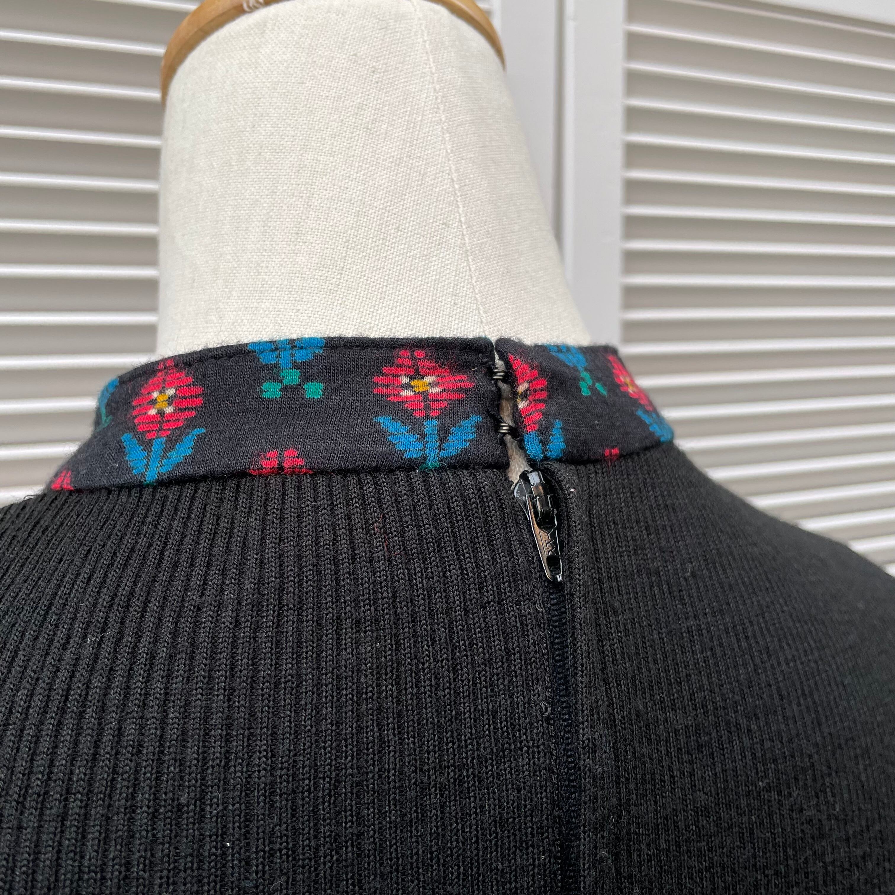 floral docking dress〈レトロ古着 花柄 ドッキングワンピース 黒〉