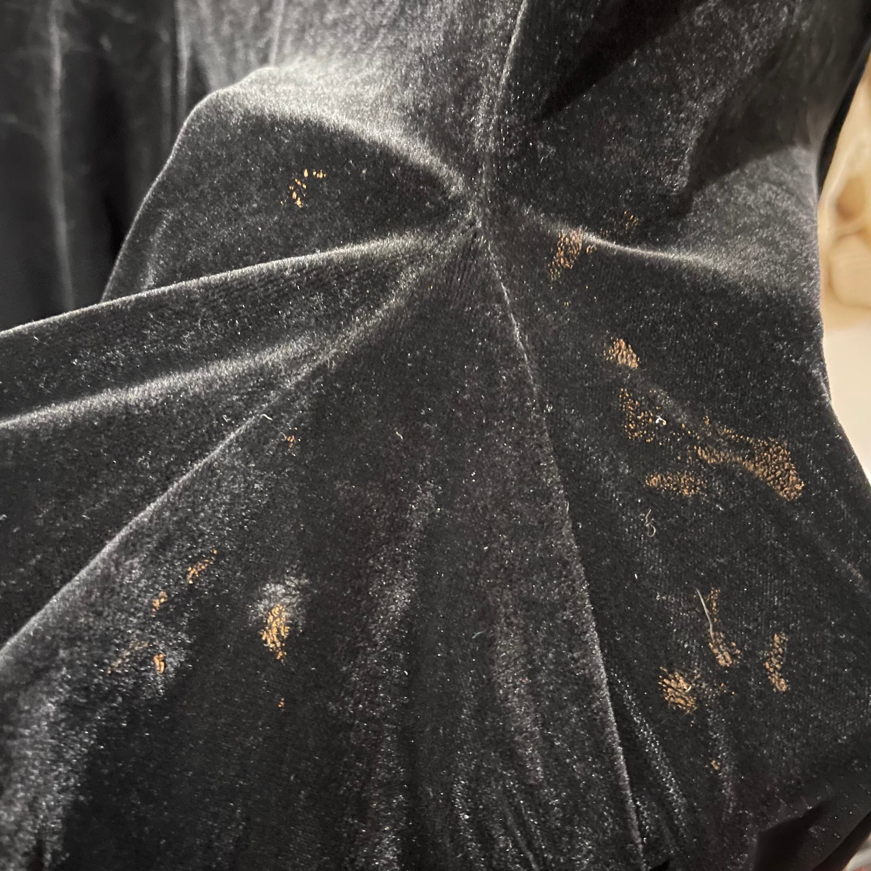 マーメイドシルエットならではのエレガントさとブラックのベロア素材が重厚感漂う一点