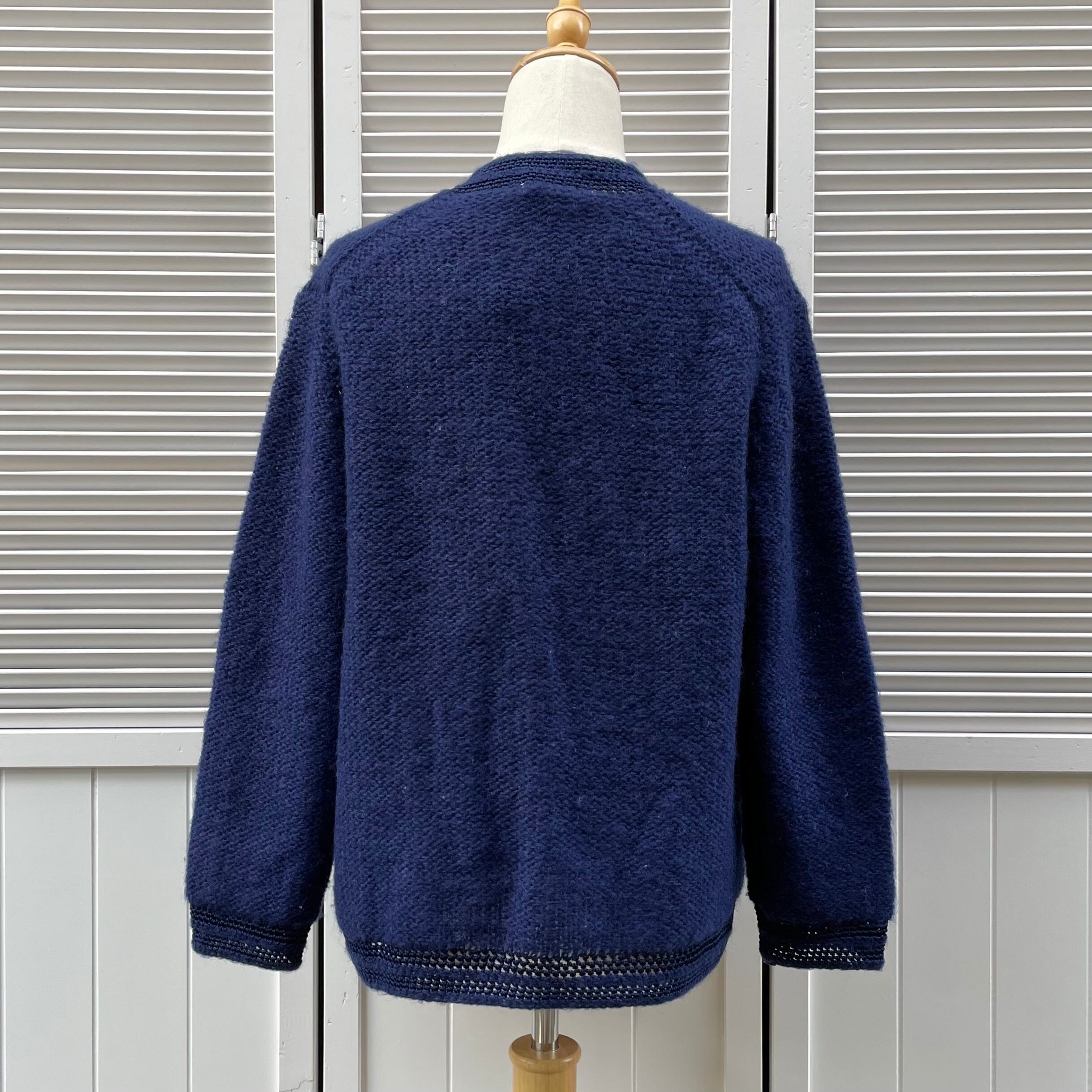 flower embroidery navy cardigan 〈レトロ古着 フラワー刺繍 ネイビー カーディガン 紺 青 〉