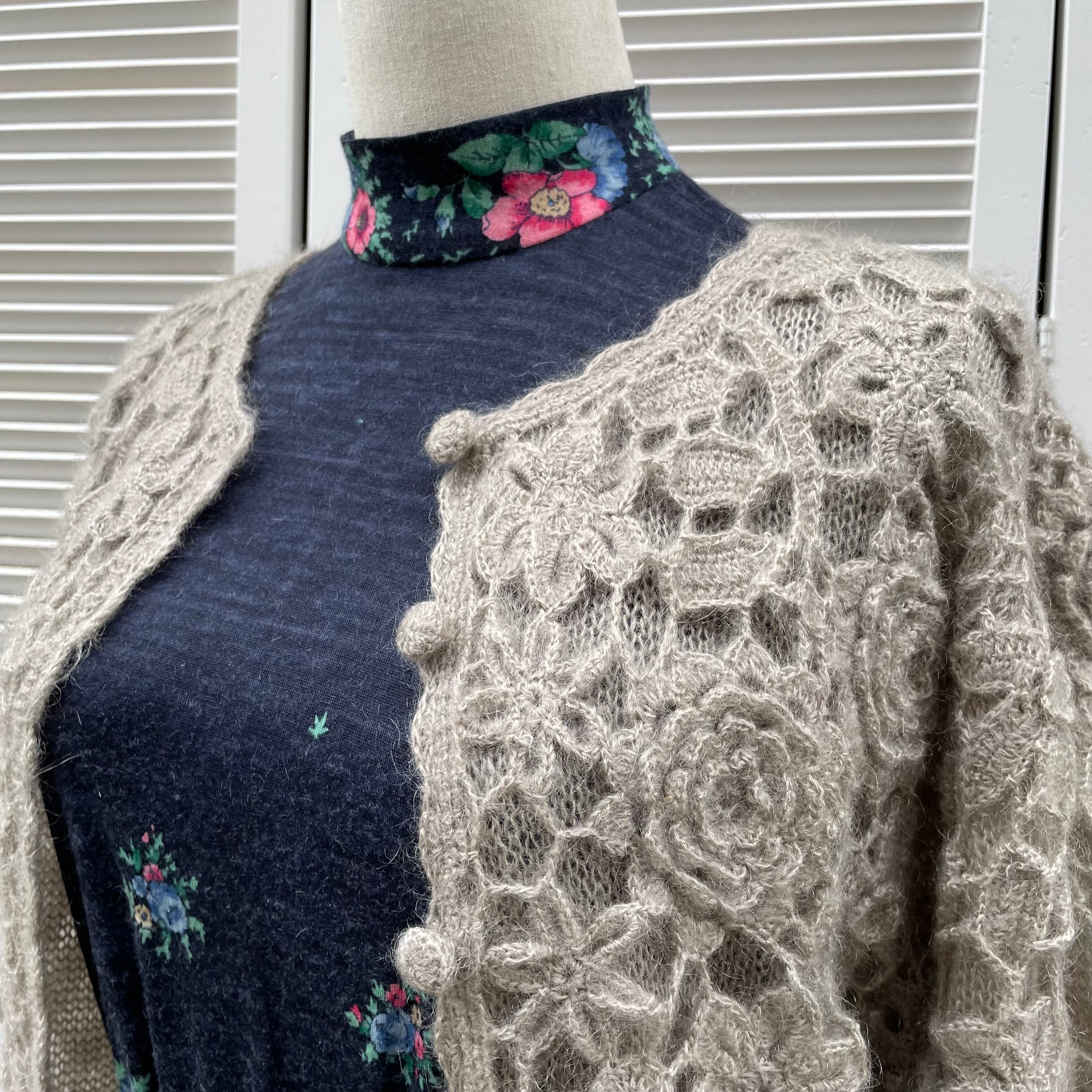 floral crochet cardigan 〈レトロ古着 フラワー クロシェ編み カーディガン〉