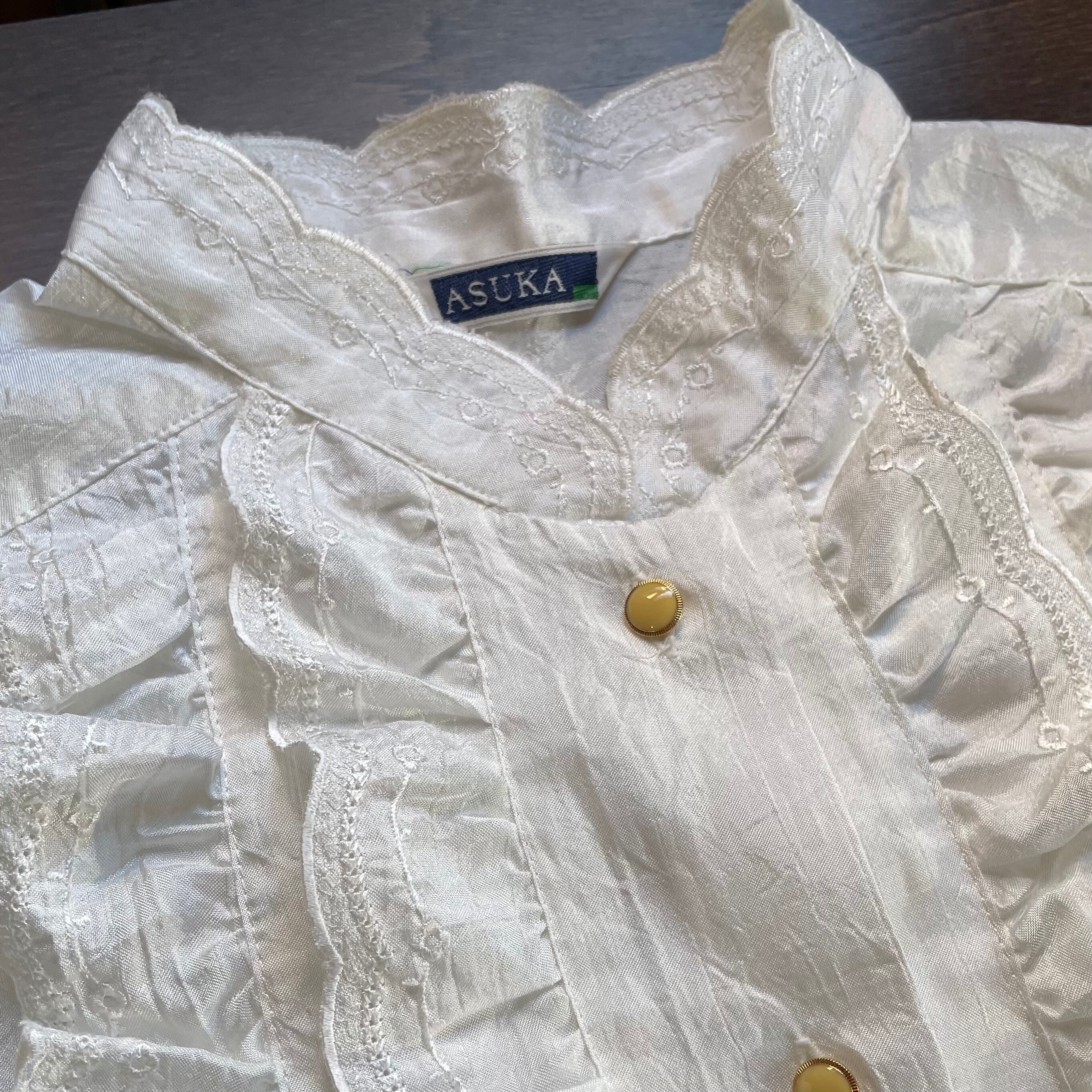 embroidered frill blouse〈レトロ古着 刺繍 フリルブラウス 日本製〉