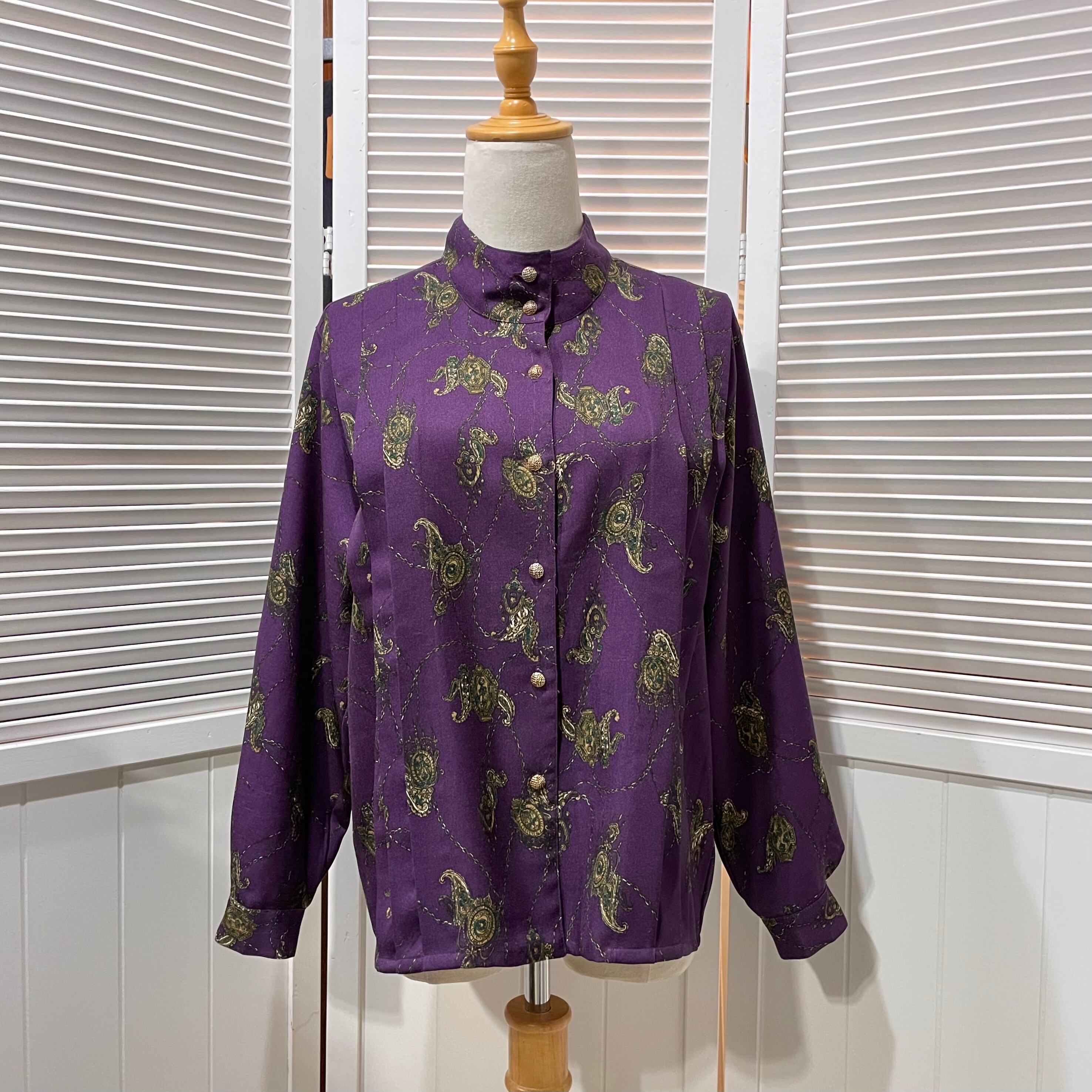 古着ならではのチェーン柄にダークパープルが個性たっぷりのブラウス