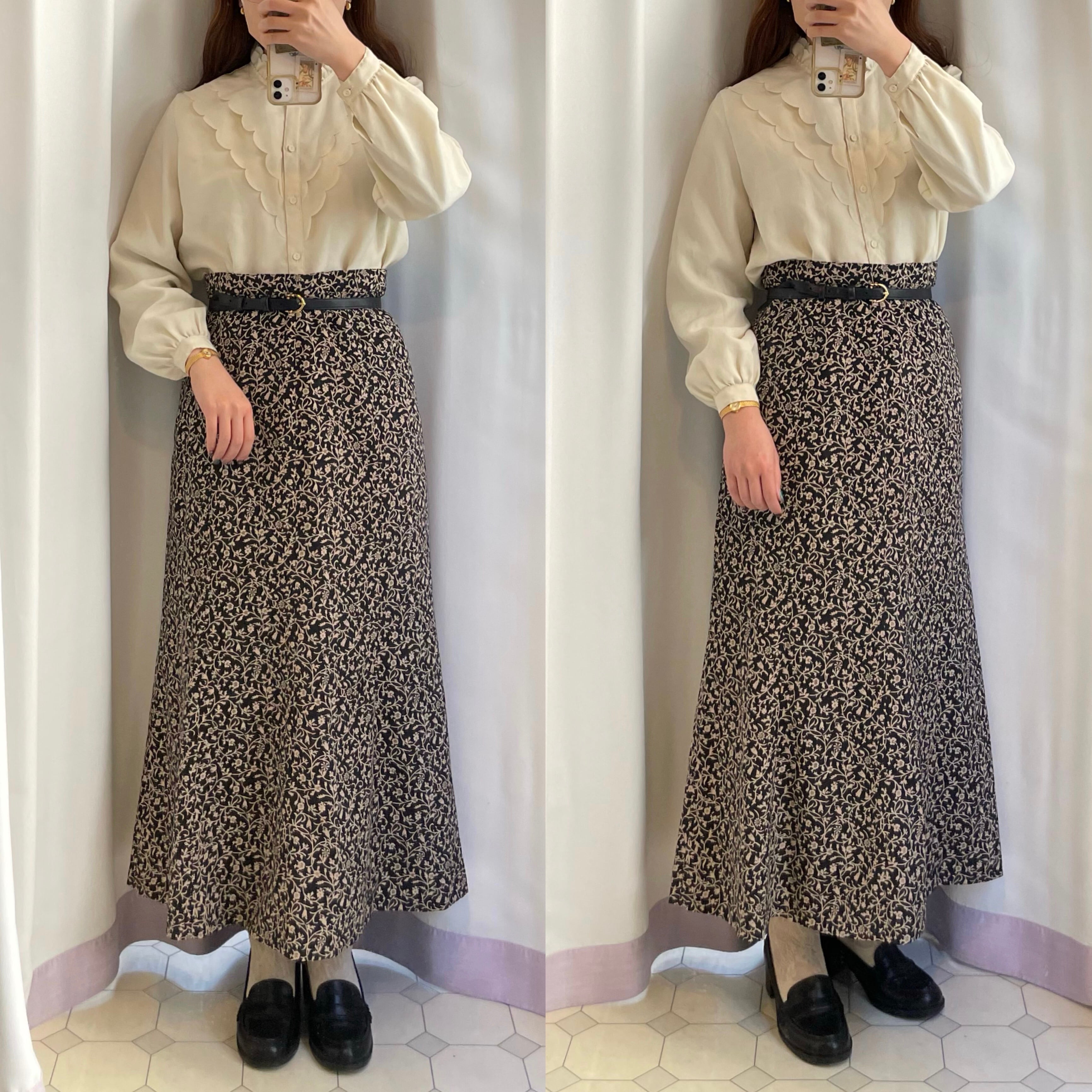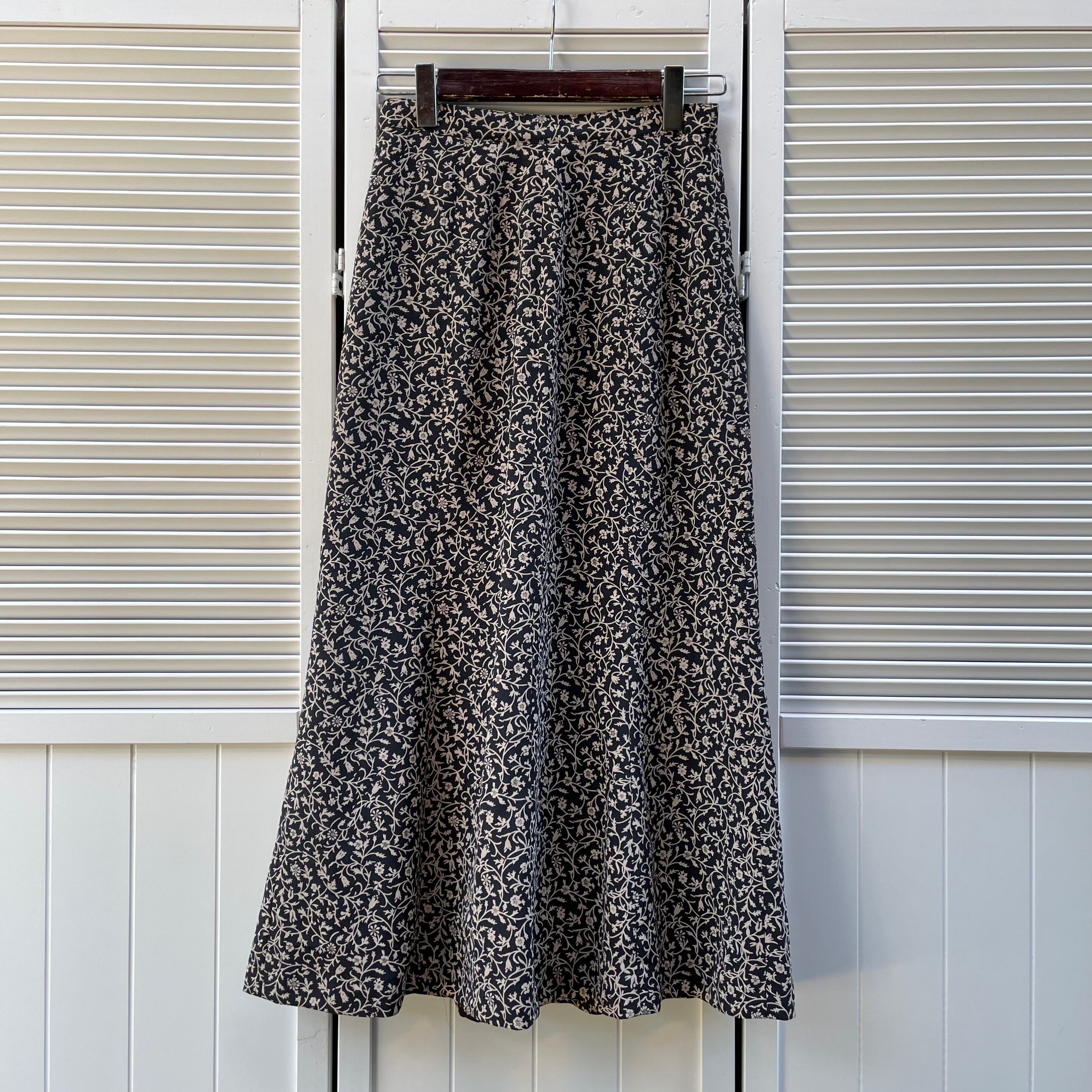 arabesque pattern semi-flared skirt 〈レトロ古着 アラベスク柄 セミフレアスカート 黒 花柄〉
